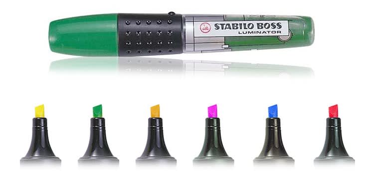 Το Stabilo Luminator ανήκει στην κατηγορία των μαρκαδόρων υπογράμμισεως υγρής μελάνης. Το ιδιαίτερα μεγάλο δοχείο μελάνης και η ανθεκτική του μύτη εγγυώνται τη μεγάλη διάρκεια ζωής του. Με μοντέρνα εμφάνιση και διαφανές στέλεχος με μετρητή, για το συνεχές έλεγχο της στάθμης της μελάνης. Έχει ομοιόμορφη διάχυση μελάνης μέχρι την τελευταία σταγόνα ενώ είναι κατάλληλο για τα αεροπορικά σας ταξίδια μιας που το μελάνι του δεν στάζει ακόμη και αν αλλάξει η ατμοσφαιρική πίεση. Διαθέτει λαβή που δεν γλυστράει αλλά και με μύτη ειδικά σχεδιασμένη για εύρος γραφής 2 και 5mm.