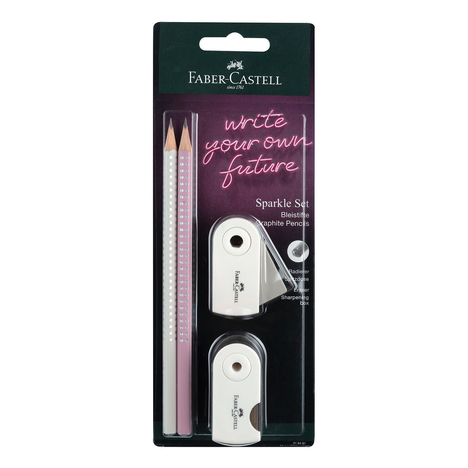 Faber Castell Μολύβια Sparkle II Coconut/Ροζ B 2τεμ. & Γόμα & Ξύστρα Mini Sleeve