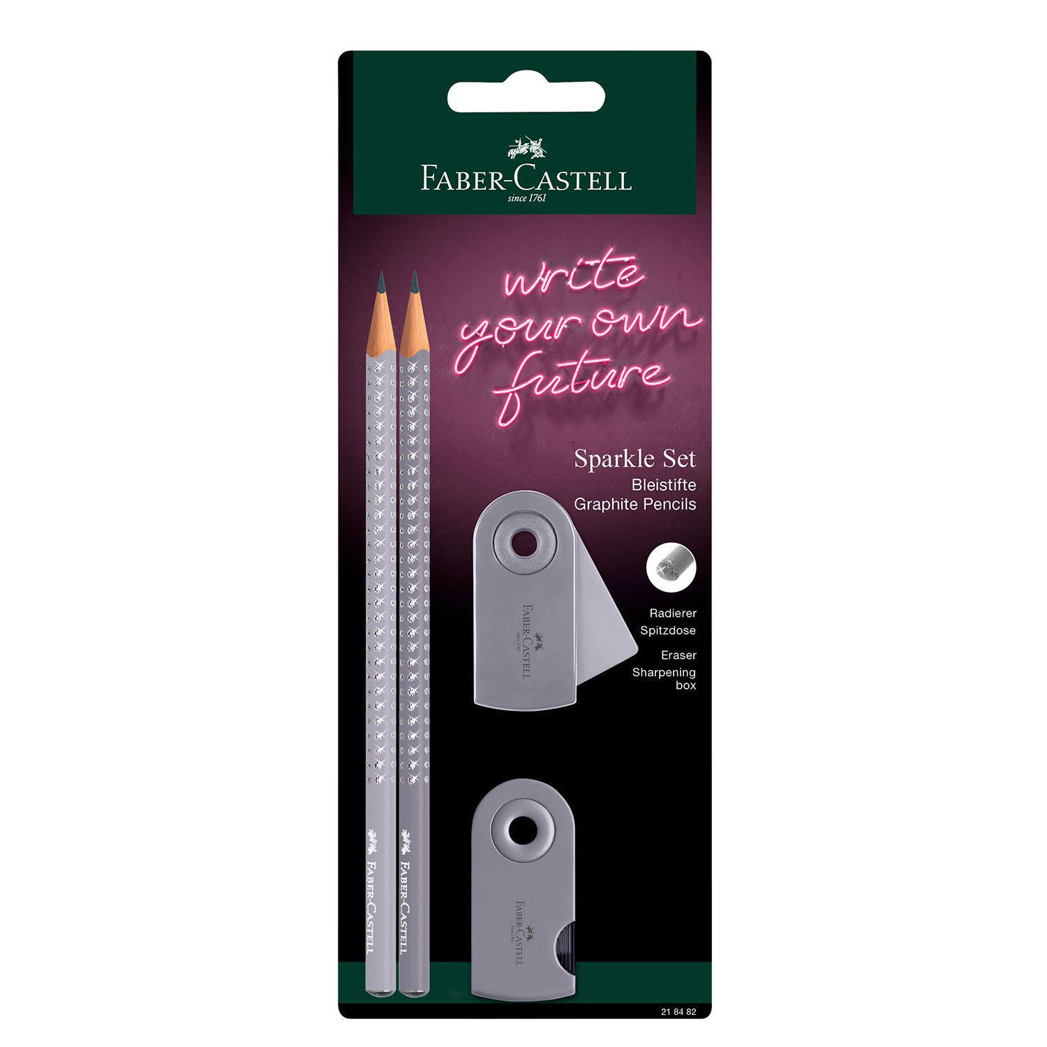Πρόσθεσε στο σχολικό σου εξοπλισμό το πιο πρακτικό σετ γραφικής ύλης που περιλαμβάνει 2 μολύβια Sparkle, μία γόμα και μία ξύστρα – φυσικά με την ποιότητα της Faber Castell!