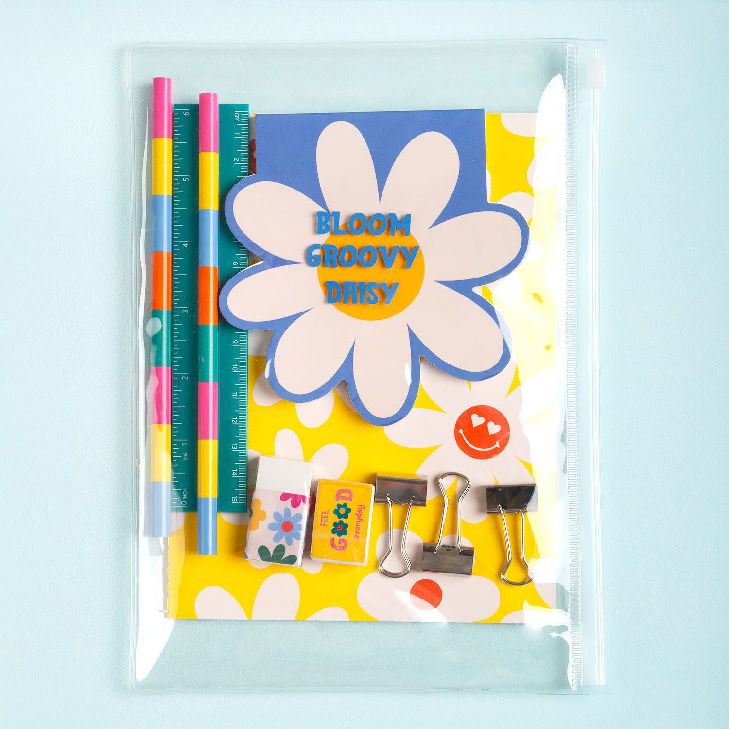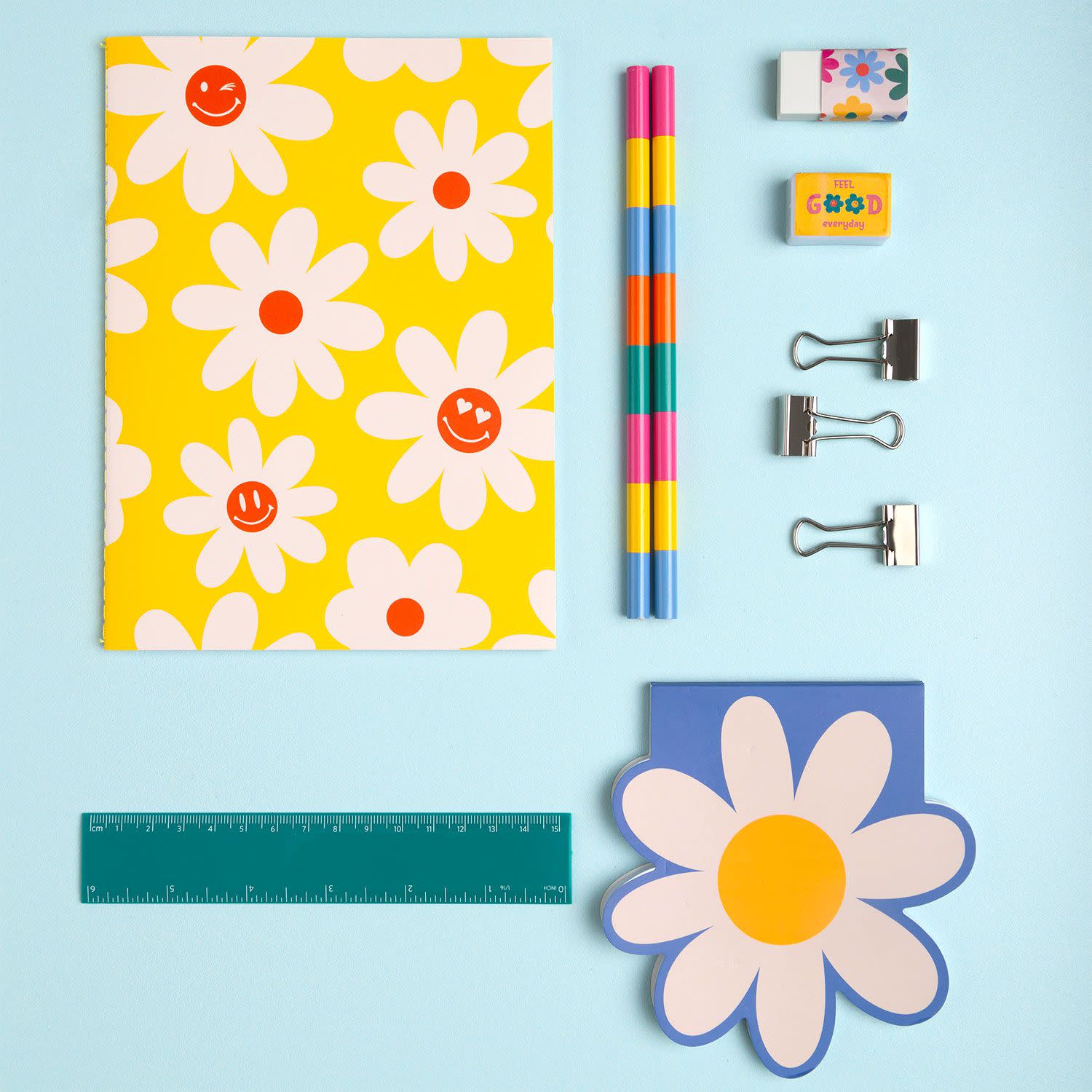 Όλος ο εξοπλισμός που χρειάζεσαι για το σχολείο, σε ένα σετ! Κάνε δικό σου το πιο girly σετ γραφικής ύλης Smiley της Goomby και ετοιμάσου να κρατήσεις τις πιο ξεχωριστές σημειώσεις της τάξης!