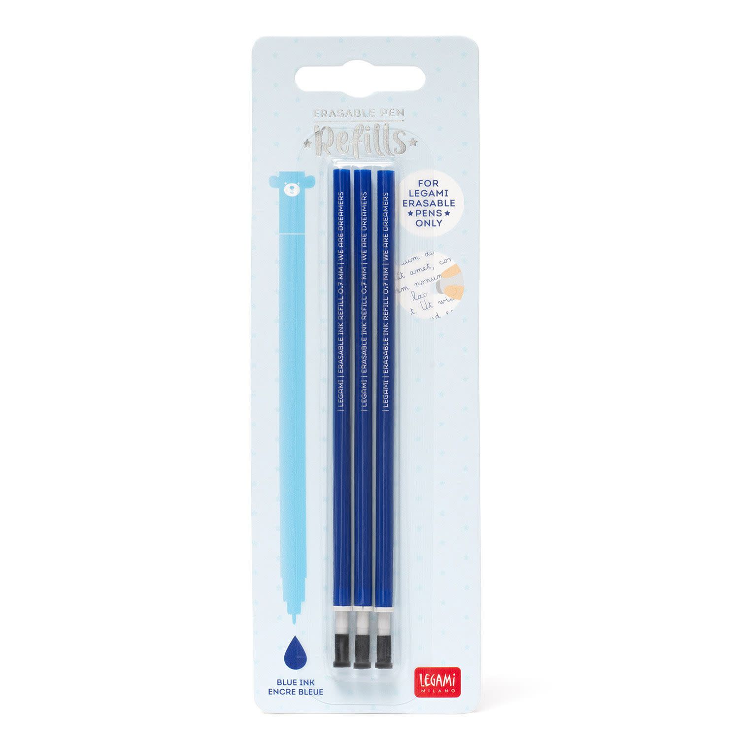 Ανταλλακτικά για το Legami Erasable Pen σε μπλε χρώμα, με μύτη 0,7mm. Η συσκευασία περιλαμβάνει 3 τεμάχια.