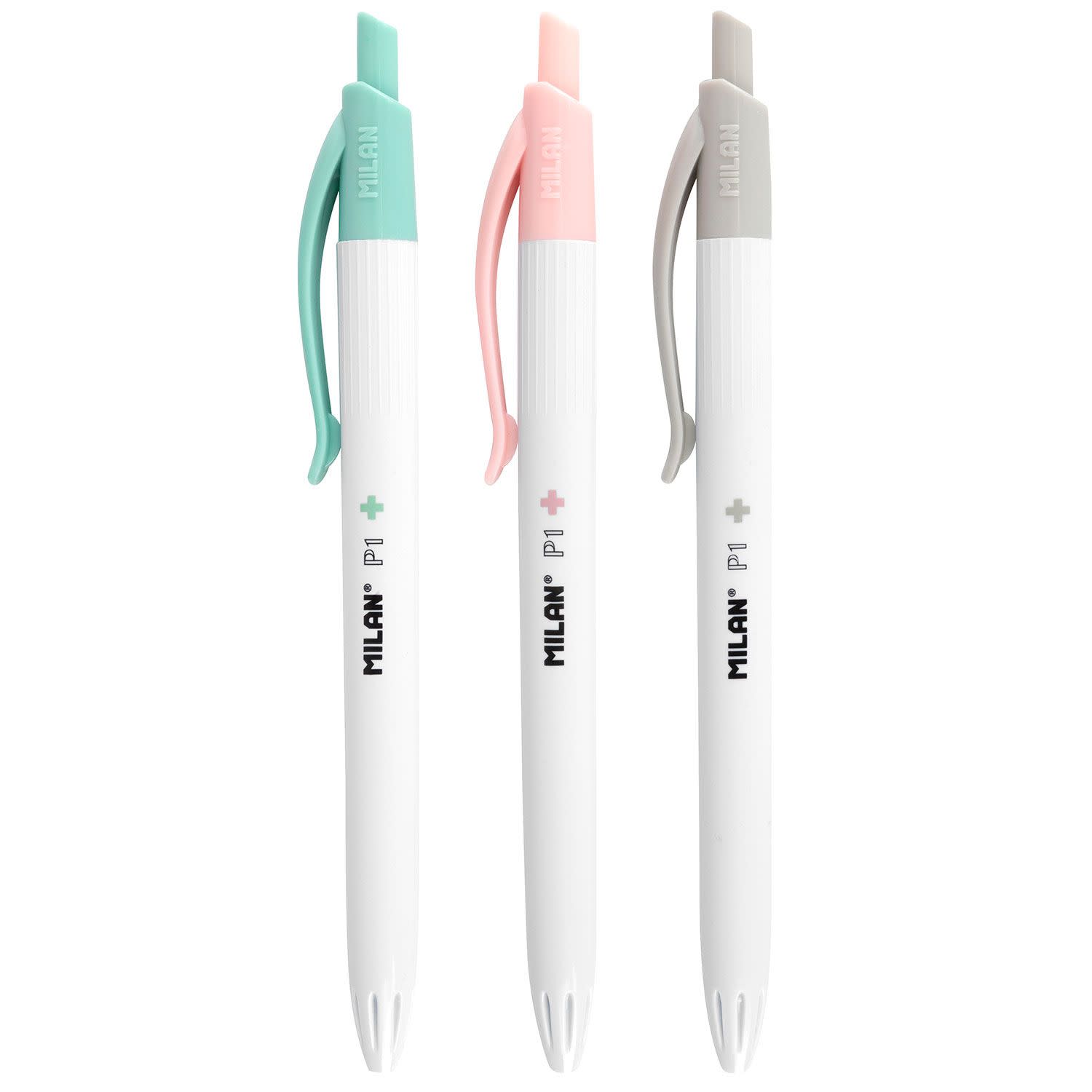 Σετ με τρία στυλό διαρκείας από τη Milan σε 3 διαφορετικές αποχρώσεις. Είναι αντιβακτηριδιακά, για να νιώθεις απόλυτα ασφαλής... ακόμα και όταν γράφεις! Το στυλό έχει πάχος γραφής 1mm για άνετη και καθαρή γραφή. Τα χρώματα που περιέχονται στο σετ είναι μπλε, κόκκινο και μαύρο.