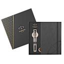 Σετ δώρου σε πολυτελή συσκευασία, το οποίο περιλαμβάνει στυλό διαρκείας P Ι.Μ. CR Metalic Grey ΒT, καθώς και το αυθεντικό notebook της Parker. Ένα στυλό Parker πάντα αποτελεί μία υπέροχη επιλογή δώρου για τους αγαπημένους σου ή έναν ξεχωριστό τρόπο για να πεις σε κάποιον «Ευχαριστώ». Πόσο μάλλον, εάν συνοδεύεται και από ένα σημειωματάριο σε ιδανικό μέγεθος, για να το έχεις παντού μαζί σου.