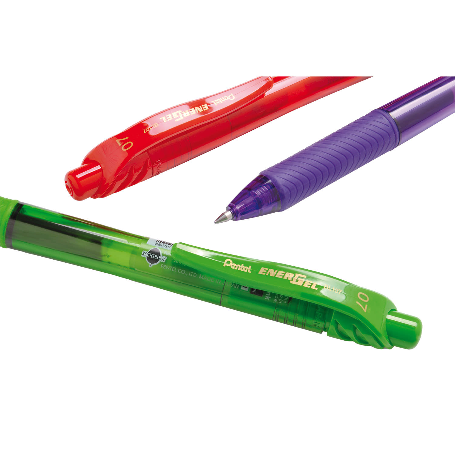 Στυλό Gel Energel με πάχος μύτης 0.7mm και πάχος γραφής 0.4mm, από την Pentel. Φωτεινό και απαλό στη γραφή, χάρη στο επαναστατικής σύνθεσης μελάνι gel. Έχει μεγάλη διάρκεια γραφής, όσο και τα στυλό υγρής μελάνης και στεγνώνει γρήγορα, χωρίς να μουτζουρώνει το χαρτί. Διαθέτει κουμπί, αλλά και λαστιχένια λαβή για ξεκούραστο κράτημα!