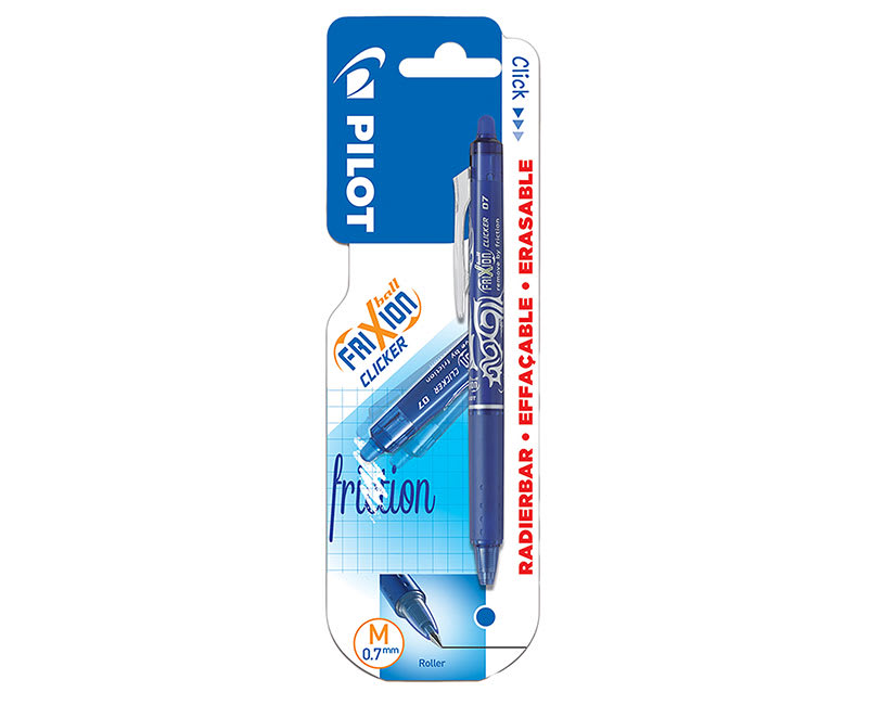 Το επαναγεμιζόμενο Pilot Στυλό Gel Frixion προσφέρει μία νέα τεχνολογία στα είδη γραφής. Το μελάνι εξαφανίζεται με τη θερμότητα επιτρέποντας σoυ όχι μόνο να γράφεις καθαρά αλλά και να σβήνεις ακόμα πιο καθαρά. Διαθέτει μύτη πάχους 0.7mm η οποία χαρίζει μαλακή γραφή, ενώ είναι κατάλληλο για καθημερινή χρήση στο σχολείο, στο γραφείο και στο σπίτι. Απαραίτητο εργαλείο στους φανατικούς του σταυρολέξου και του sudoku!