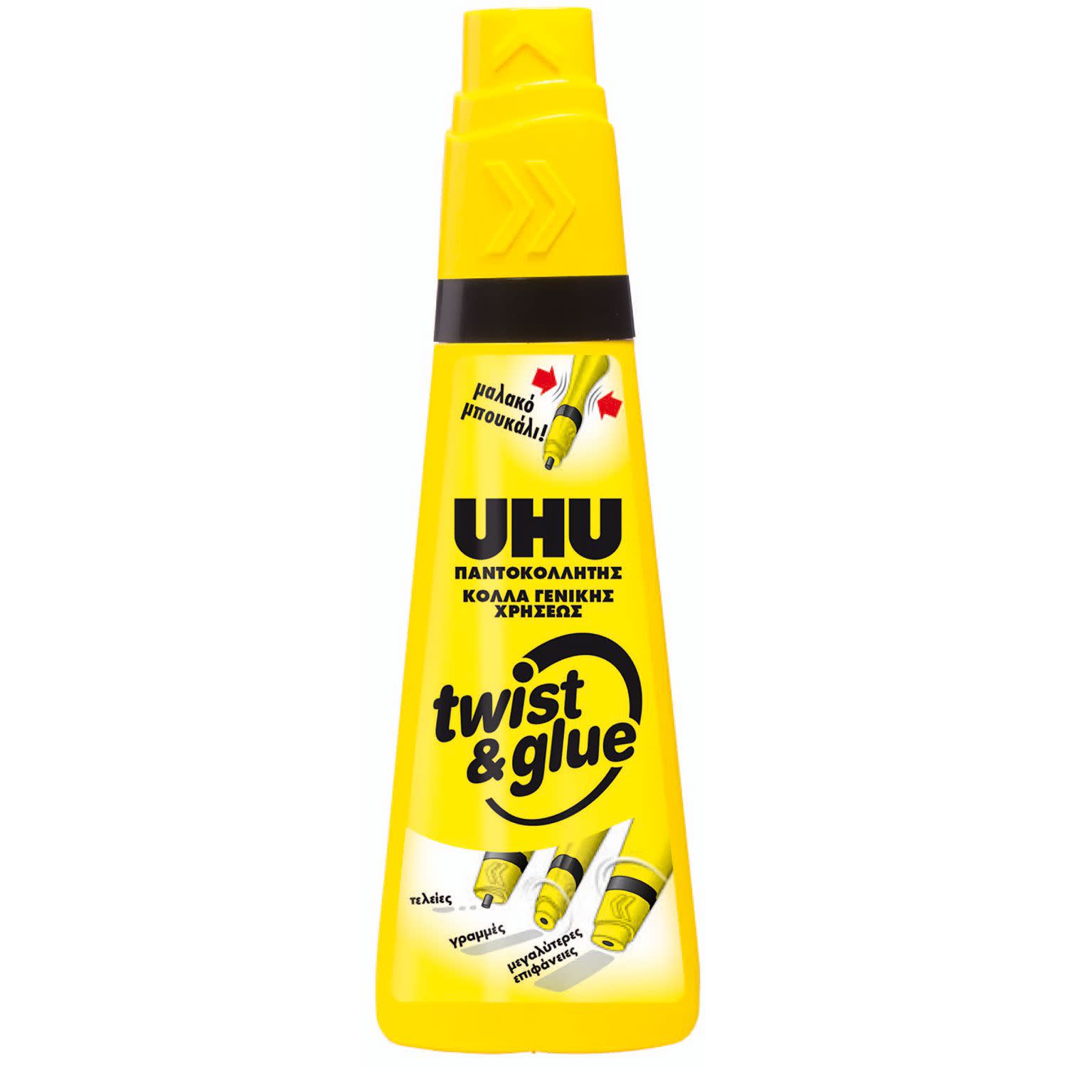 Ένωσε κάθε ξύλινη, τσόχινη, γυάλινη, δερμάτινη κ.α. επιφάνεια που χρειάζεται κόλλημα, με την κόλλα UHU Twist & Glue!