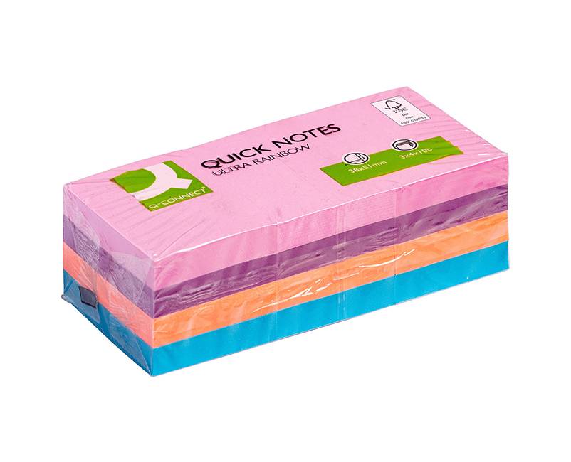 Q-Connect Αυτοκόλλητα Χαρτάκια Rainbow 38X51mm 1200φύλλα