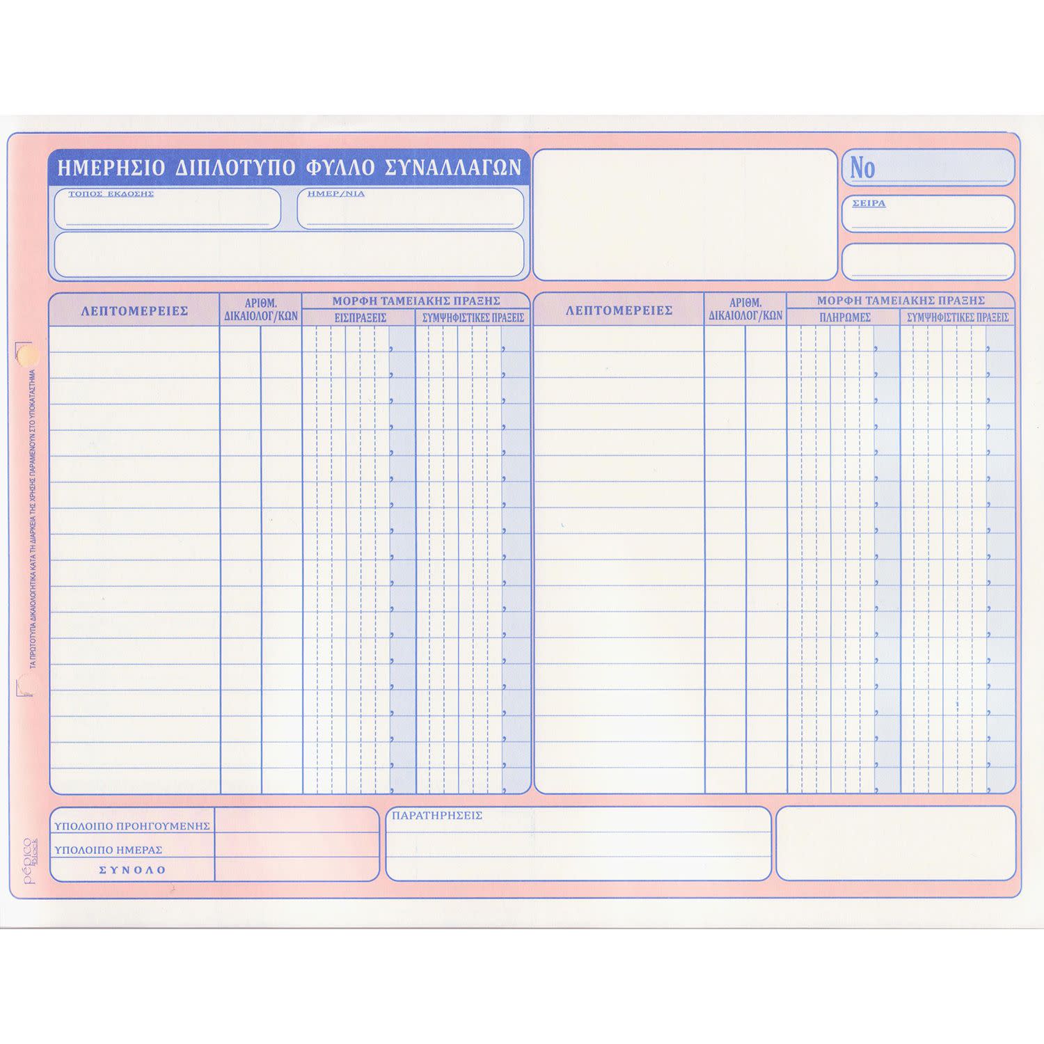 Ημερήσιο φύλλο συναλλαγών, Νο 308, λογιστικό έντυπο για καθημερινή καταγραφή των συναλλαγών.