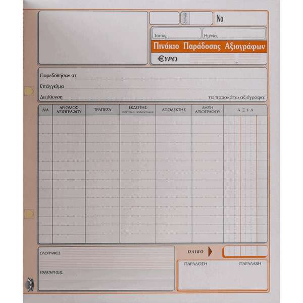 Τυποτράστ Πινάκιο Παράδοσης Αξιόγραφων Νο 298