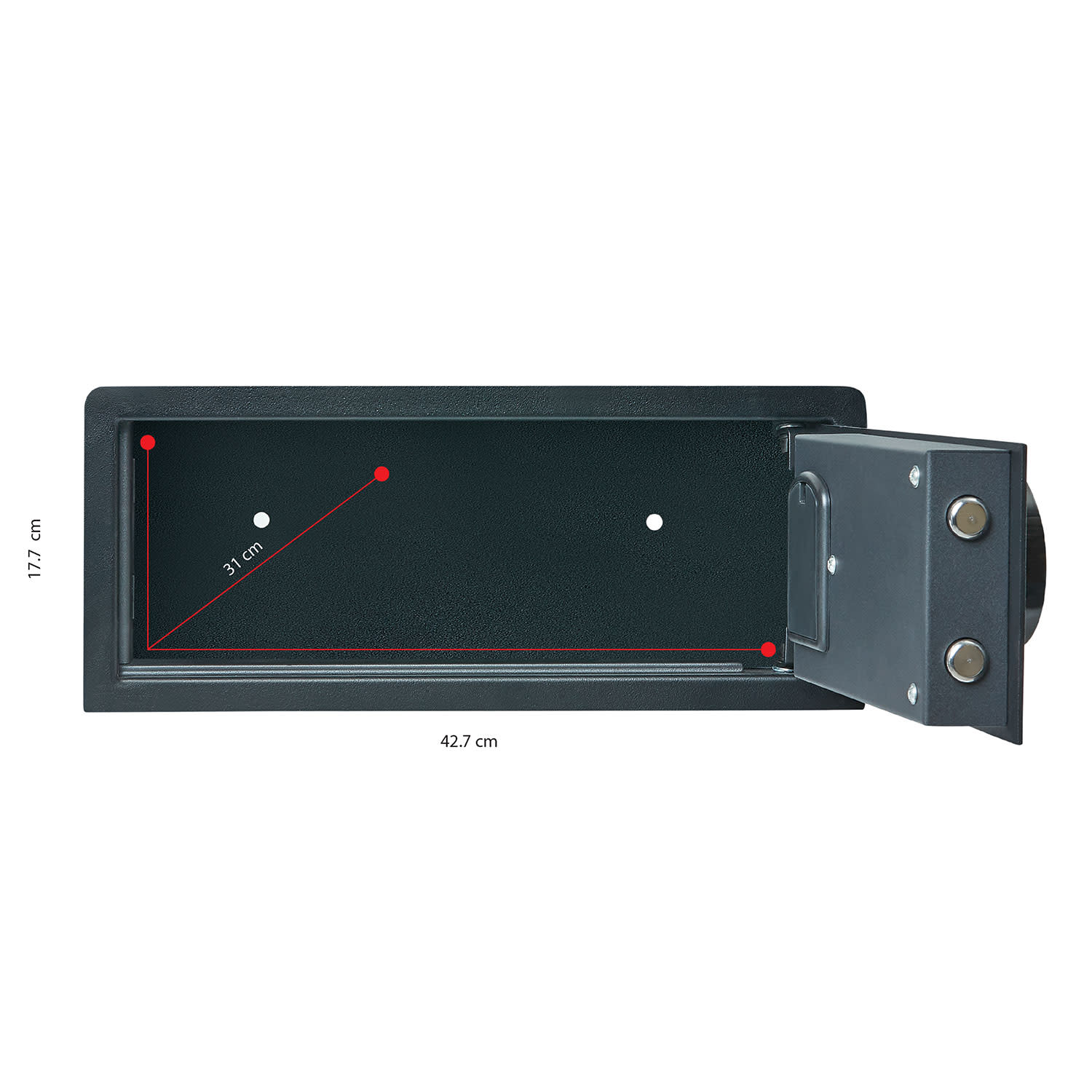 Με χωρητικότητα 23,4 λίτρα, το χρηματοκιβώτιο προσφέρει αρκετό χώρο για την ασφαλή φύλαξη προσωπικών αντικειμένων, εγγράφων και ηλεκτρονικών συσκευών. Επίσης είναι ιδανικό για ξενοδοχεία, αφού καλύπτει την ανάγκη των επισκεπτών να ασφαλίσουν το 17" laptop τους. Ακόμα το εσωτερικό του είναι πλήρως επενδυμένο με μαλακή μοκέτα, ώστε να προστατεύει τα προσωπικά αντικείμενα από γρατζουνιές ή φθορές.
