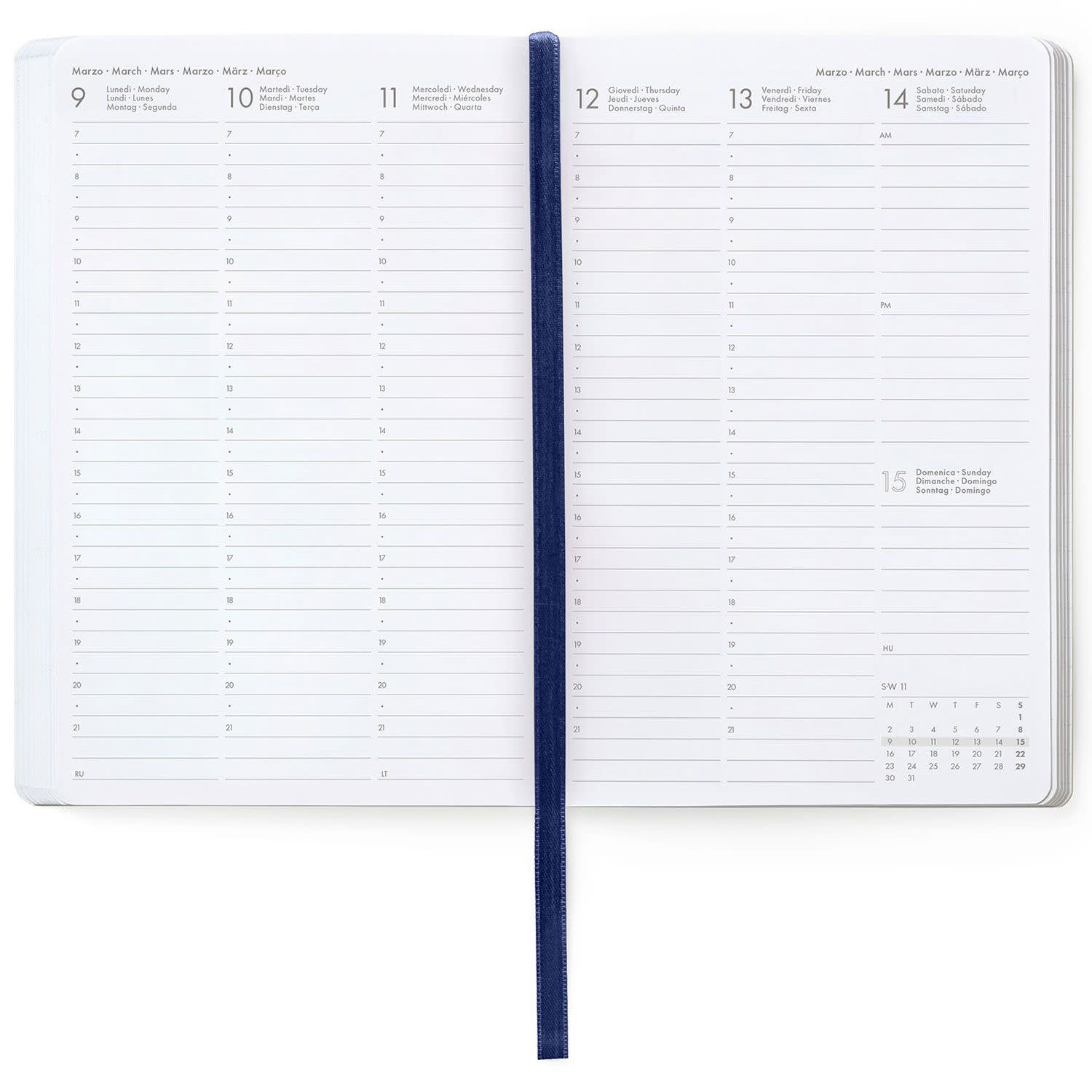 Ξεκινώντας από τον Σεπτέμβριο του 2025 έως τον Δεκέμβριο του 2026 σε βοηθάει να βάζεις τάξη και να κάνεις highlight όλες τις σημαντικές στιγμές. Έρχεται με άφθονο χώρο για καθημερινές σημειώσεις, συναντήσεις και εκκρεμότητες, που οργανώνονται από τις 7 π.μ. έως τις 9 μ.μ. Επιπλέον, σου δείχνει τις διεθνείς αργίες, καθώς και ένα βολικό χρονοδιάγραμμα. Τέλος, διαθέτει κλείσιμο με λάστιχο και πίσω τσέπη, για εύχρηστη αποθήκευση εγγράφων.