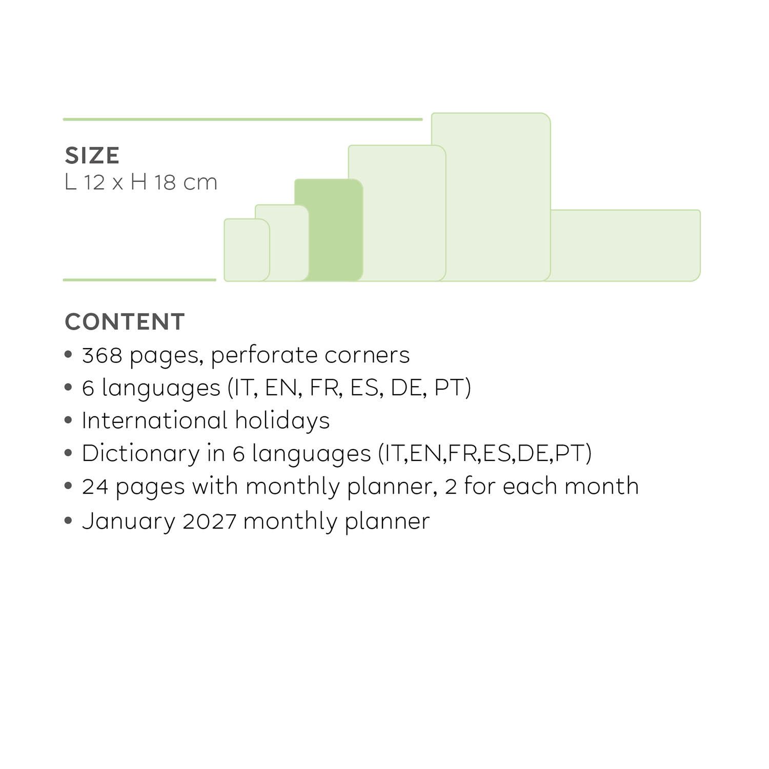 Έρχεται με άφθονο χώρο για καθημερινές σημειώσεις, συναντήσεις και εκκρεμότητες, που οργανώνονται από τις 7 π.μ. έως τις 9 μ.μ., 2 σελίδες planner για κάθε μήνα, καθώς και αναδιπλούμενο planner για τον Ιανουάριο του 2027. Επιπλέον, σου δείχνει τις διεθνείς αργίες, καθώς και ένα βολικό χρονοδιάγραμμα. Τέλος, διαθέτει κλείσιμο με λάστιχο και πίσω τσέπη, για εύχρηστη αποθήκευση εγγράφων.