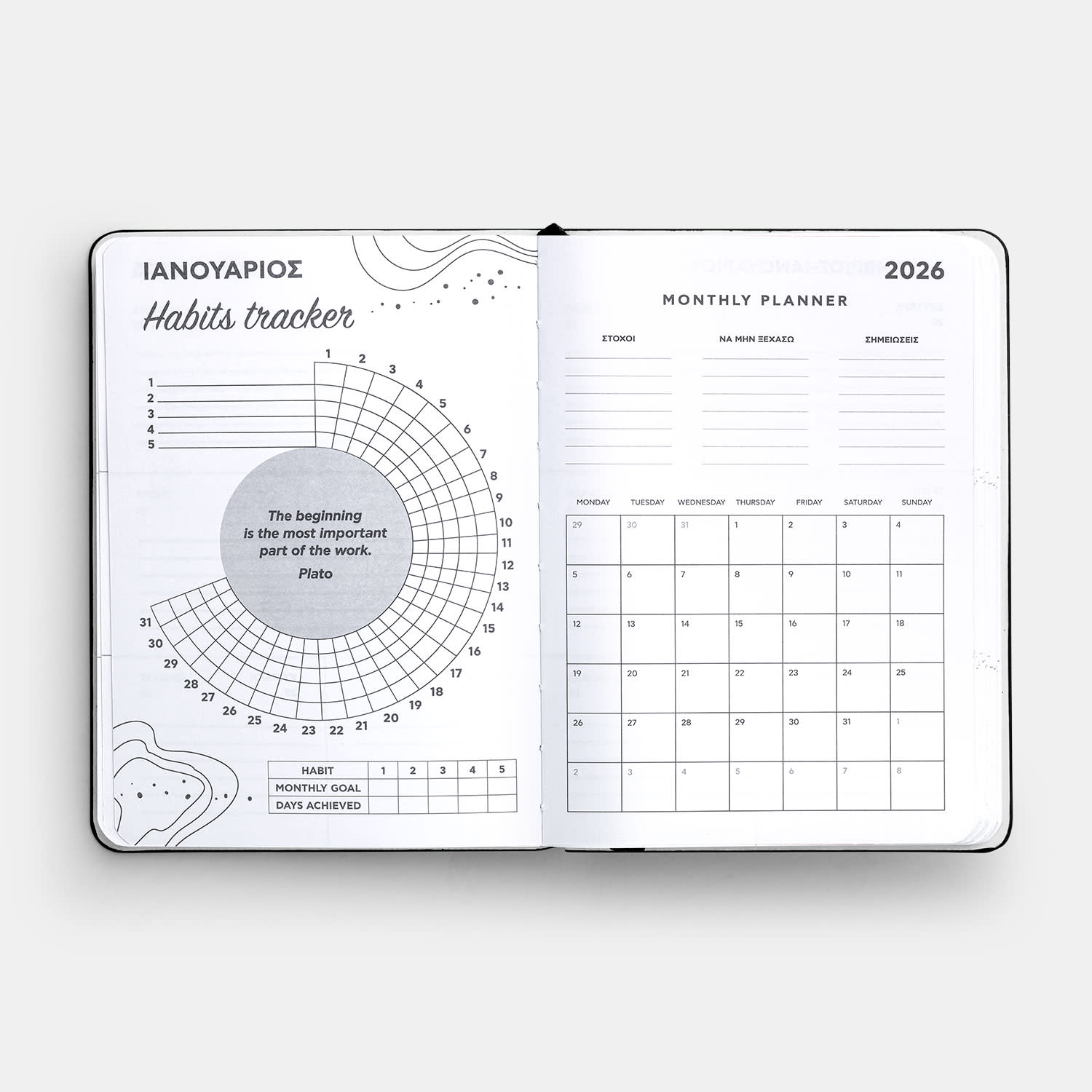 Αυτό το ακαδημαϊκό ημερολόγιο δεν είναι μόνο για να καταγράφεις τα «to-do» σου! Στην αρχή κάθε μήνα διαθέτει Habit Tracker, για να κάνεις focus στους στόχους σου και special quotes!