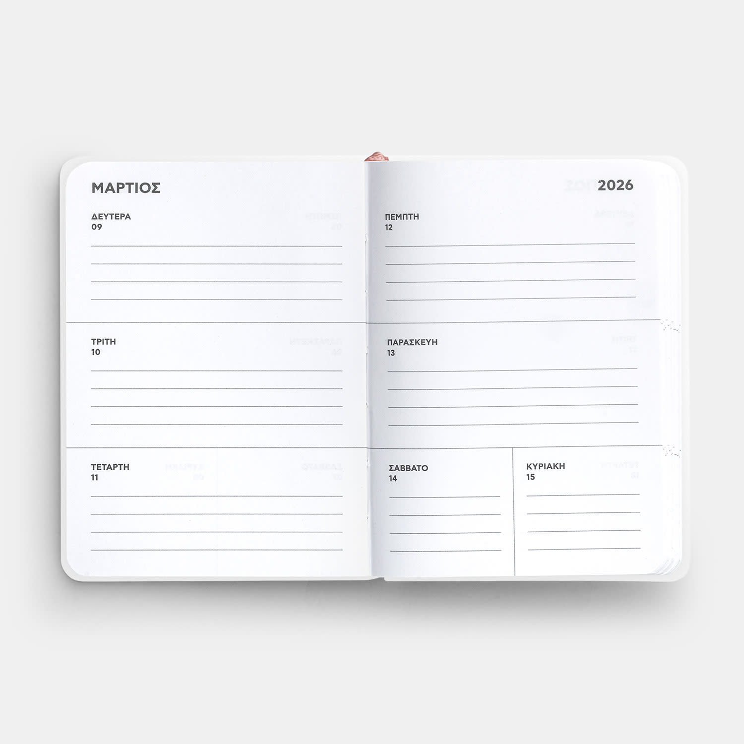 Ακαδημαϊκό ημερολόγιο 2025-2026 από τη Sentio για να κουβαλάς μαζί σου τα daily «to do». Διαθέτει ετήσιο πλάνο και στυλό για να καταγράφεις απευθείας ό,τι θες! Υφασμάτινο σελιδοδείκτη για να βρίσκεις άμεσα τις σημειώσεις σου και κλείνει με λάστιχο για ασφάλεια. Επίσης σημαντικό είναι το Habit Tracker που διαθέτει στην αρχή κάθε μήνα μαζί με μήνα ένα quote που θα σε βοηθήσει να κάνεις focus στην οικοδόμηση ισχυρών συνηθειών και να βοηθήσεις στην επίτευξη των στόχων σου. Επίλεξε 5 συνήθειες που θες να ενσωματώσεις στη ρουτίνα σου και κατάγραψε καθημερινά την επίτευξή τους.