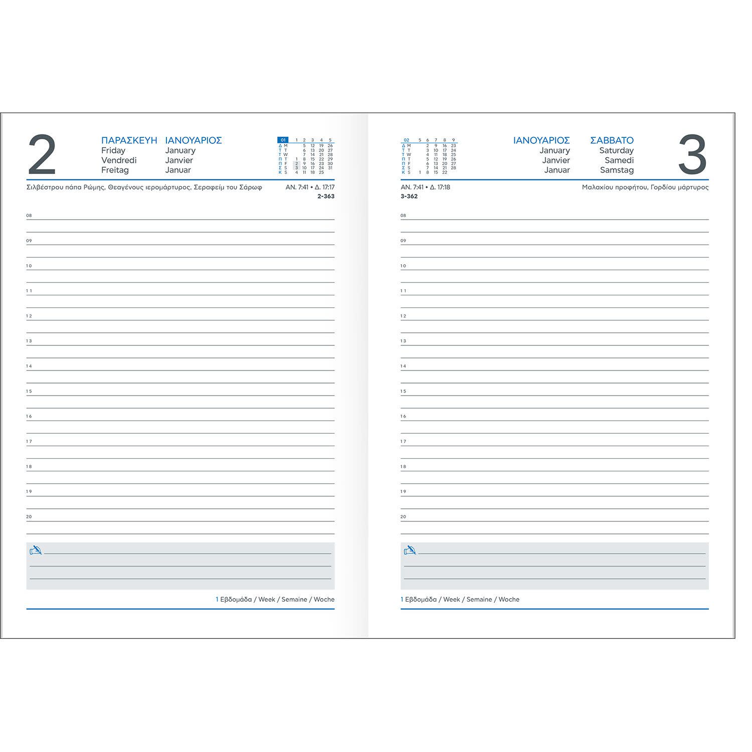 Κάνε την κάθε σου μέρα ξεχωριστή με το ημερήσιο ημερολόγιο Sentio. Βολεύει να το χρησιμοποιείς καθημερινά για τις γενικότερες σημειώσεις σου και τον προγραμματισμό των κάθε είδους εκκρεμοτήτων και ραντεβού σου. Eίναι φτιαγμένο για εσένα που θέλεις να τα έχεις όλα υπολογισμένα, οργανώνοντας από πριν και με κάθε λεπτομέρεια τις δουλειές σου! Κι επειδή και τα Σαββατοκύριακα είναι… γεμάτα, το Σάββατο και η Κυριακή απεικονίζονται σε ολόκληρες σελίδες για να υπάρχει χώρος να σημειώνεις τα πάντα!