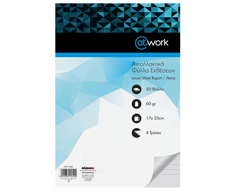 Αποτελείται από 50 ριγέ φύλλα για εκθέσεις και σημειώσεις.