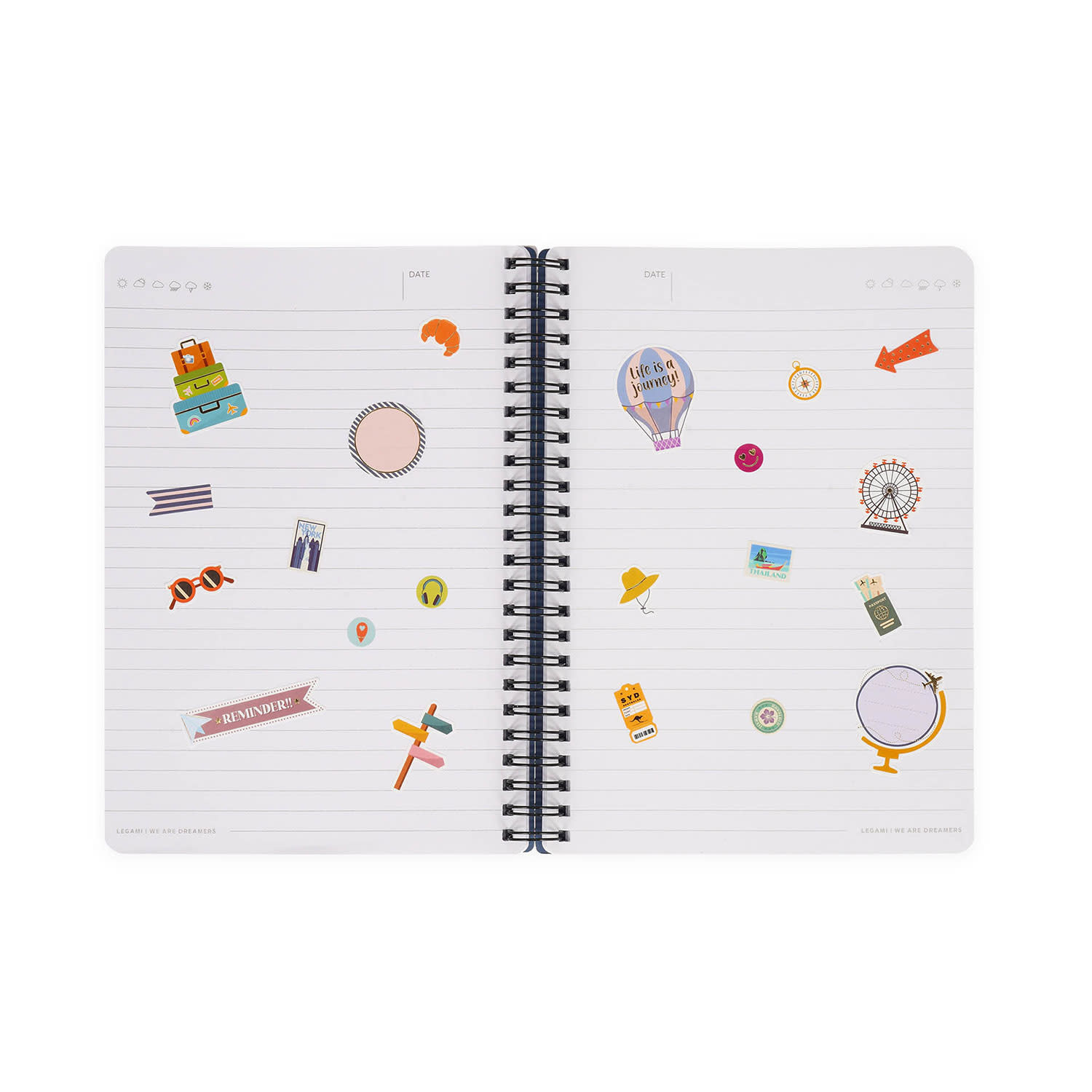 Σημειώσεις on the go, για όσους ζουν… ταξιδεύοντας! Με σπιράλ για άνετο ξεφύλλισμα και μέγεθος 15 x 21cm, το large σημειωματάριο Travel της Legami είναι το απόλυτο εργαλείο για καθημερινές σημειώσεις, λίστες και ιδέες που δεν θες να ξεχάσεις. Είτε το έχεις στην τσάντα, στο γραφείο ή στο κομοδίνο, είναι πάντα έτοιμο να καταγράψει όλες σου τις σκέψεις. Και φυσικά, με το πιο χαριτωμένο εξώφυλλο!