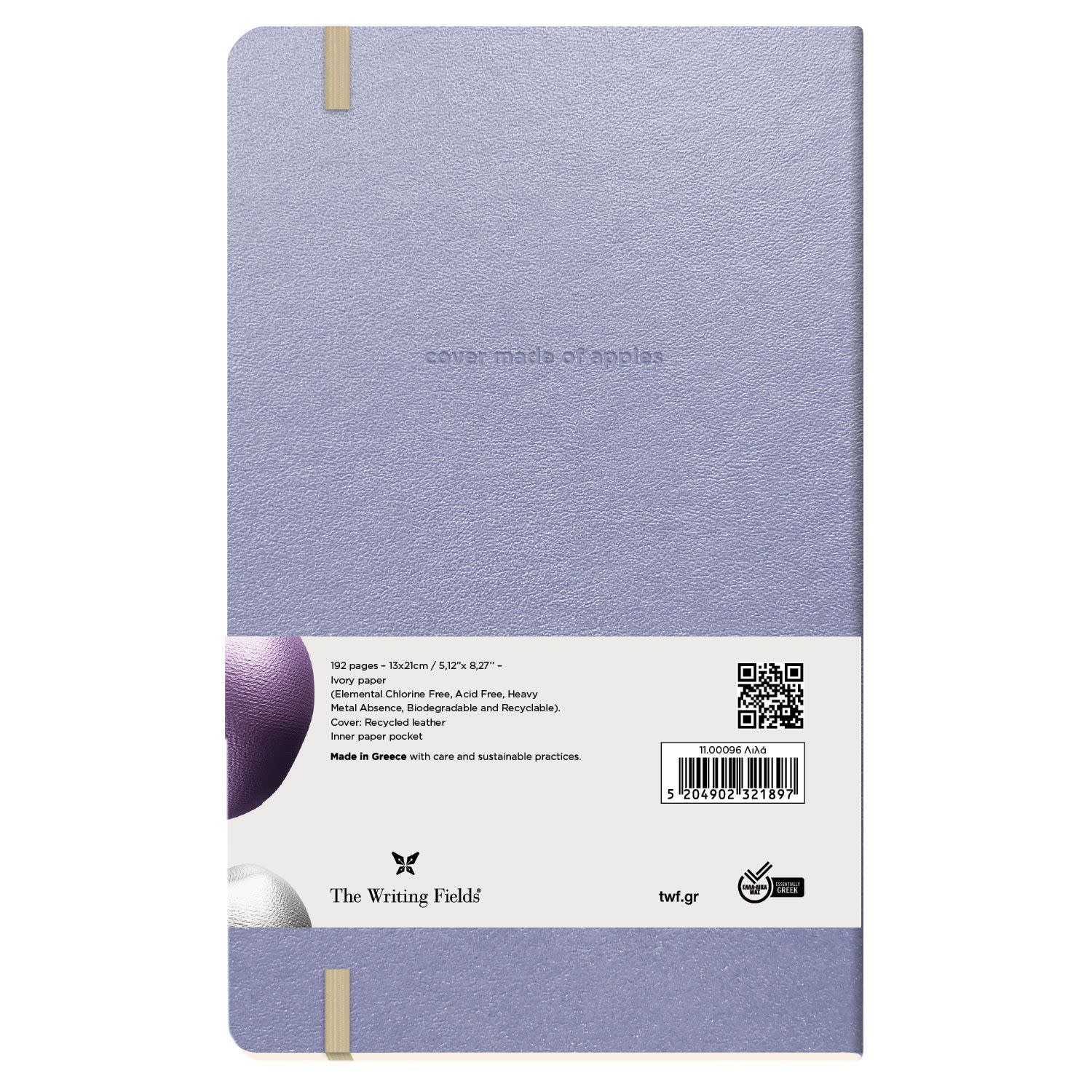 Σημειωματάριο σε μέγεθος 13 x 21 με οικολογικό εξώφυλλο από ανακυκλωμένα μήλα σε χρυσές, ασημί και λιλά αποχρώσεις. Είναι εδώ για να φέρει μια νέα διάσταση στο πως βλέπουμε σήμερα την οικολογία, που μπορεί εκτός από απόλυτα φυσική να είναι έντονη, γιορτινή και ανέμελα εξωστρεφής, σαν να έχει βγει από παραμύθι.
