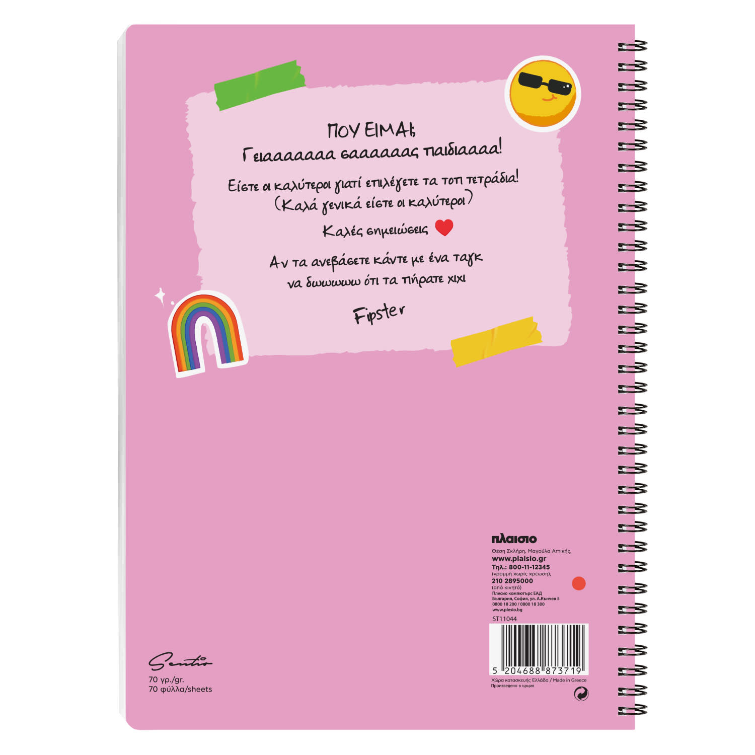 Sentio Τετράδιο Σπιράλ Α4 2 Θεμάτων Fipster Skg 70 Φύλλα