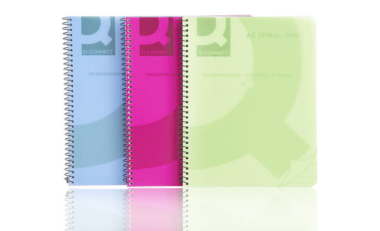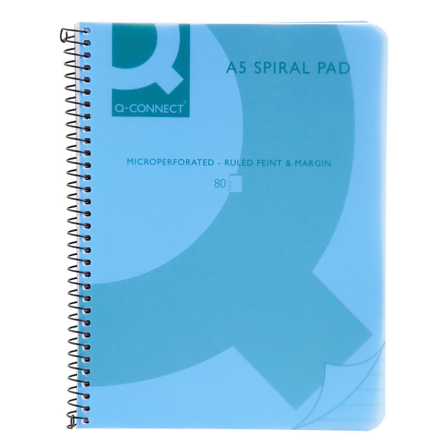 Q-Connect Τετράδιο σπιράλ ριγέ, A5 με διαστάσεις 16x21cm, 80 φύλλων, με τρύπες για αρχειοθέτηση και μικροπερφορέ για εύκολη κοπή των φύλλων.