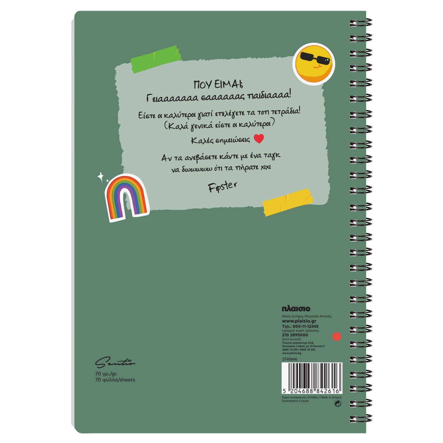 Sentio Τετράδιο Σπιράλ 17x25cm 2 Θεμ. Fipster Ru 70 Φύλλα