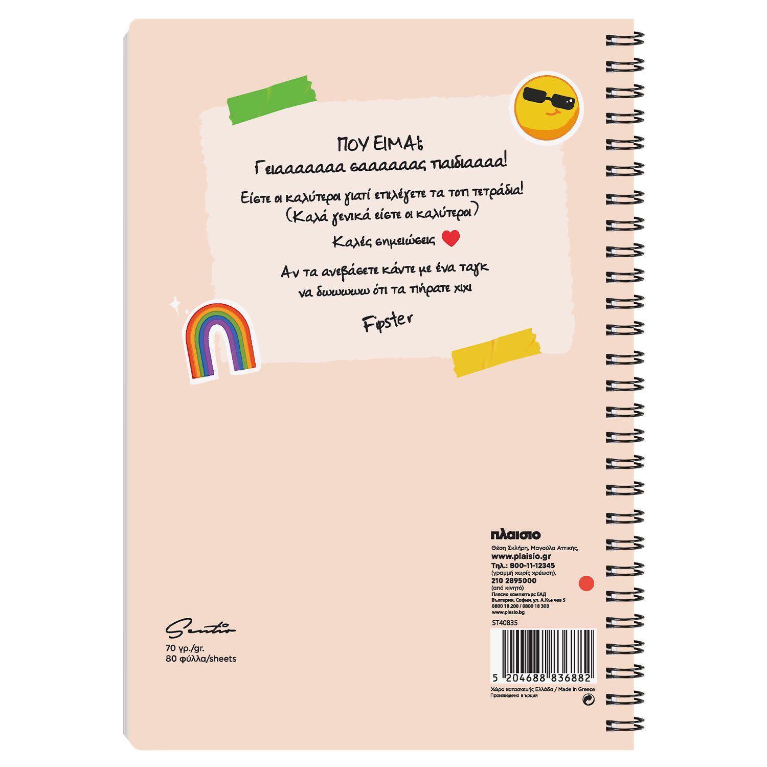 Sentio Τετράδιο Σπιράλ 17x25cm Fipster Αχ Βαχ 80 φύλλα