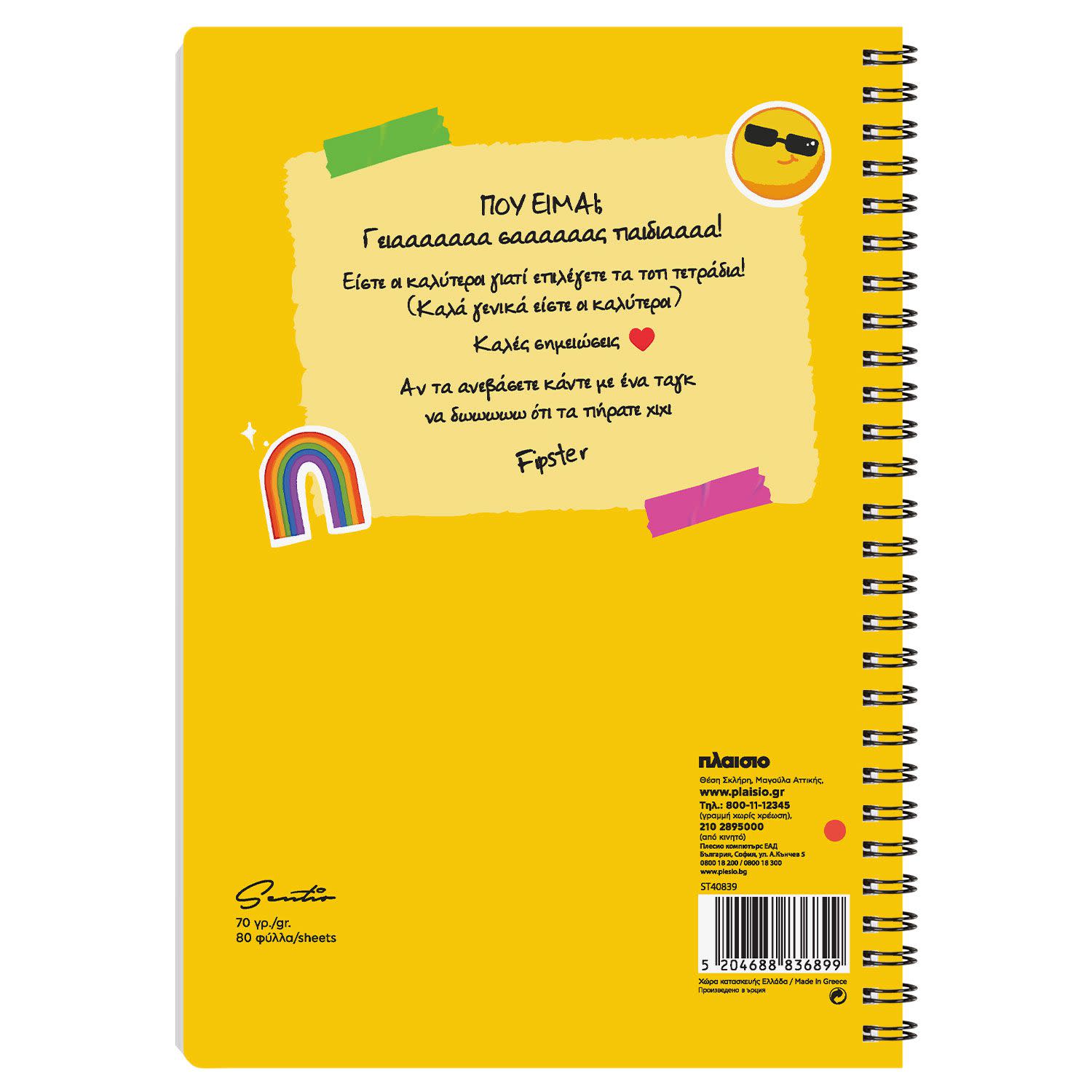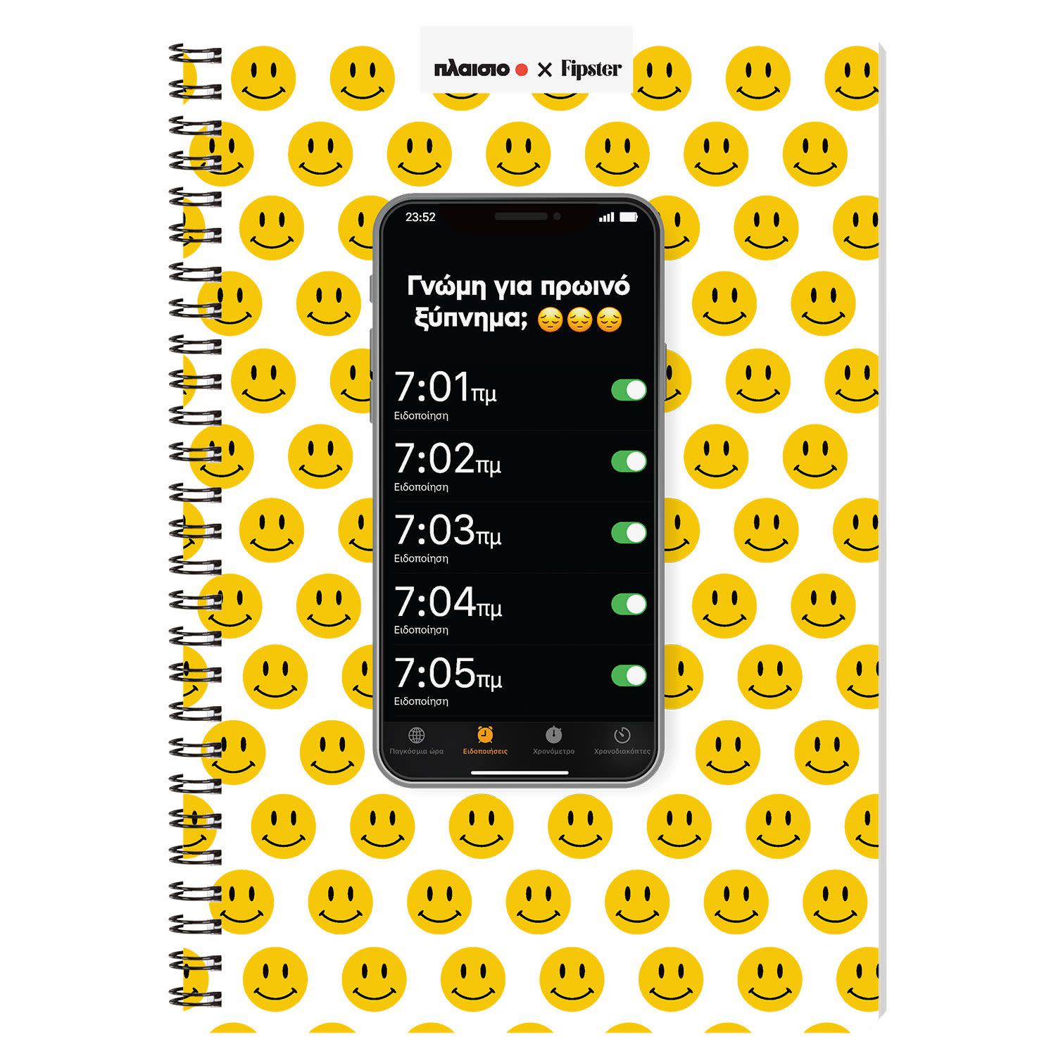 Το τετράδιο σπιράλ Β5 «Ξυπνητήρια» δημιουργήθηκε σε συνεργασία με τον Fipster και διαθέτει χάρτινο πλαστικοποιημένο εξώφυλλο, ιδανική επιλογή για εσένα, που θες να ξεχωρίζεις στο σχολείο ή στο πανεπιστήμιο! Το οπισθόφυλλο είναι από χαρτί 265gr, για να προστατεύεται και η τελευταία σελίδα, ενώ οι εσωτερικές σελίδες είναι από χαρτί 70gr με ριγέ γραμμογράφηση για καθαρή γραφή και καλογραμμένες σημειώσεις!