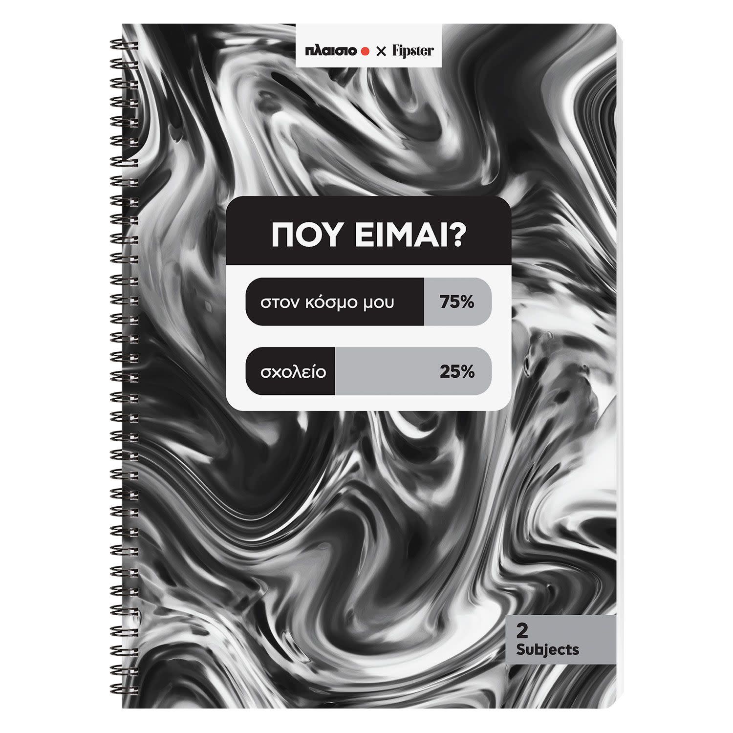 Το τετράδιο σπιράλ A4 «Που είμαι» 2 θεμάτων δημιουργήθηκε σε συνεργασία με τον Fipster και διαθέτει χάρτινο πλαστικοποιημένο εξώφυλλο, ιδανική επιλογή για εσένα, που θες να ξεχωρίζεις στο σχολείο ή στο πανεπιστήμιο! Το οπισθόφυλλο είναι από χαρτί 265gr, για να προστατεύεται και η τελευταία σελίδα, ενώ οι εσωτερικές σελίδες είναι από χαρτί 70gr με ριγέ γραμμογράφηση για καθαρή γραφή και καλογραμμένες σημειώσεις!