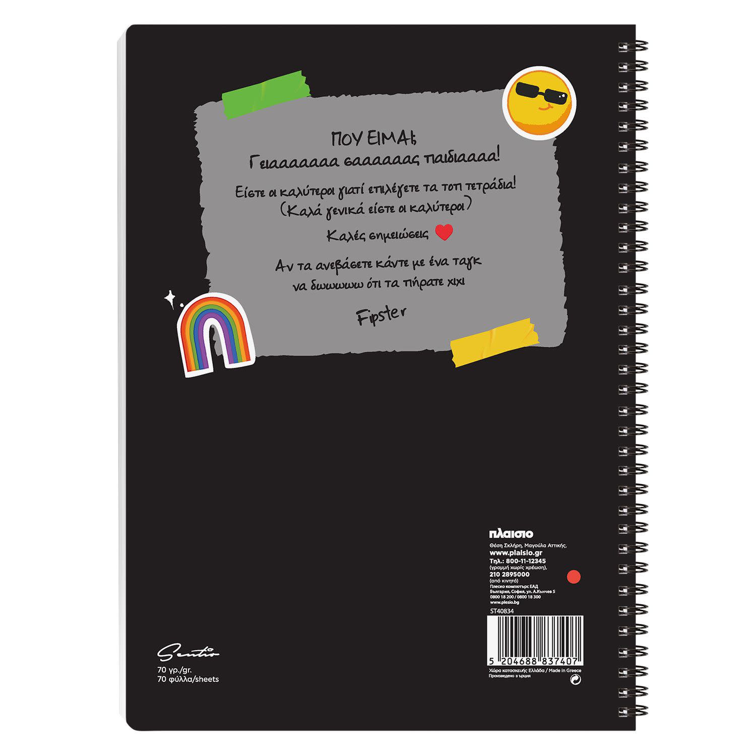 Sentio Τετράδιο Σπιράλ Α4 2 Θεμ. Fipster Που Είμαι 70 φύλλων