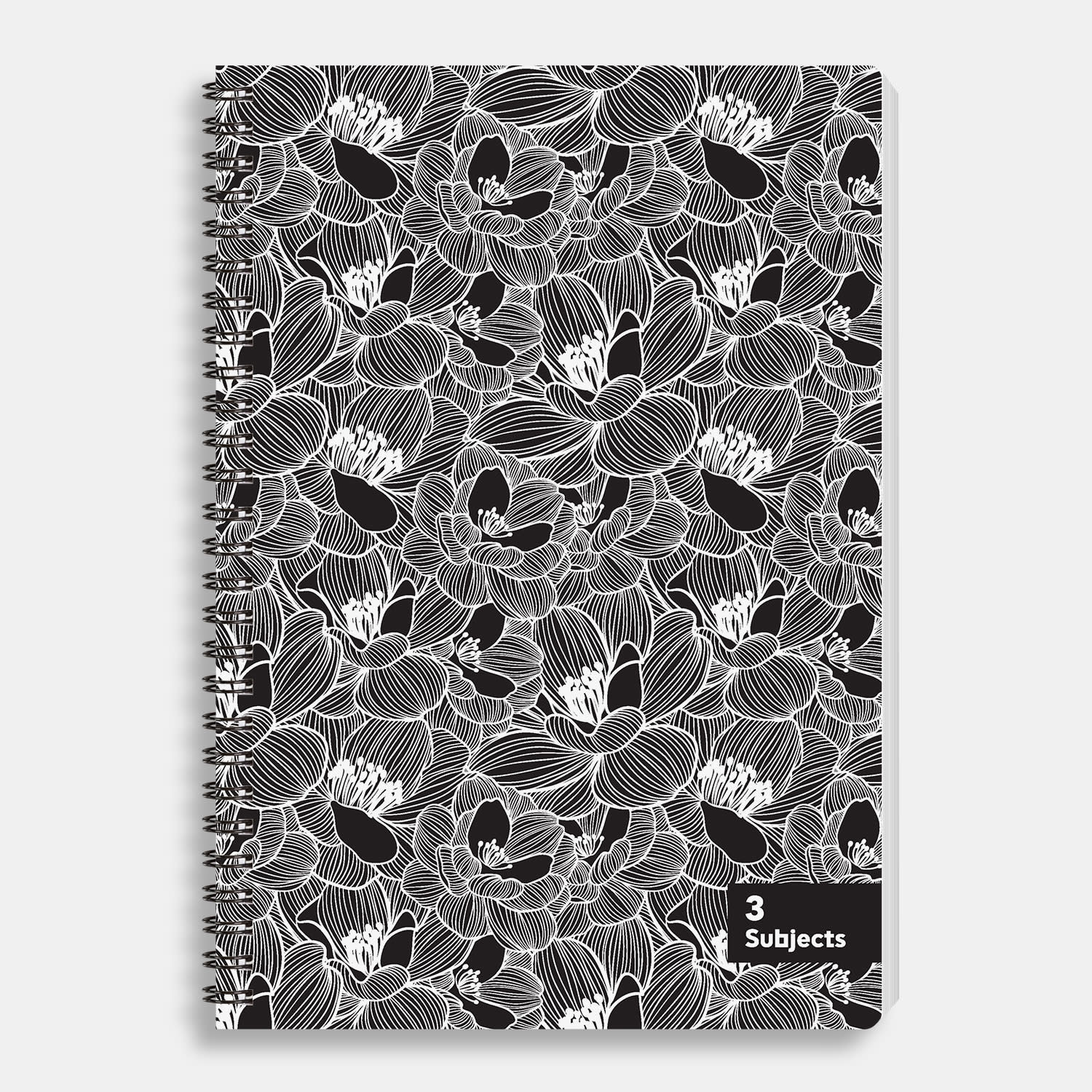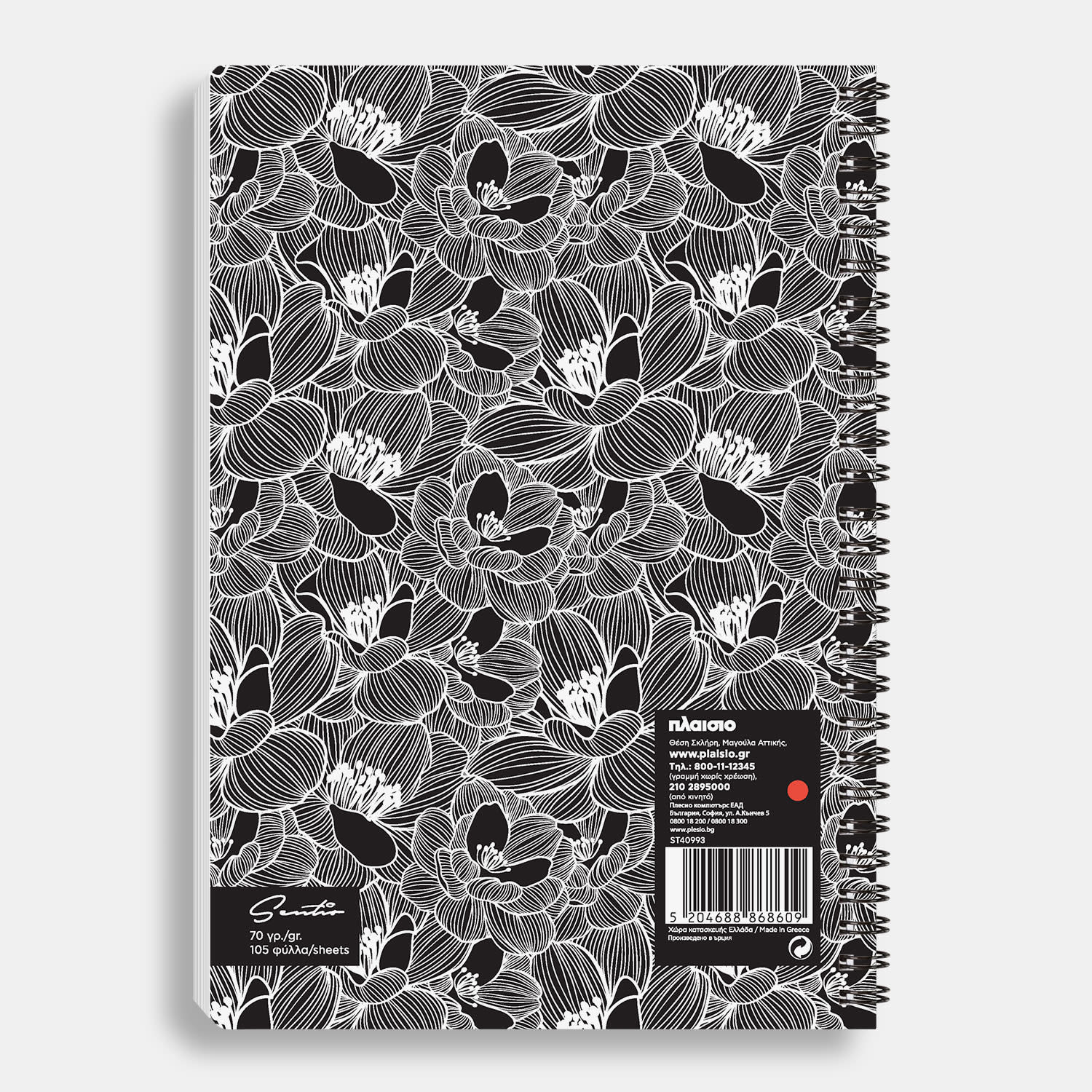 Sentio Τετράδιο Σπιράλ 17x25 3 Θεμάτων Black Flowers 105 Φύλλα