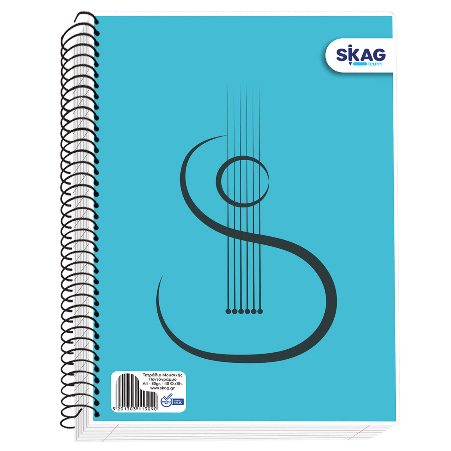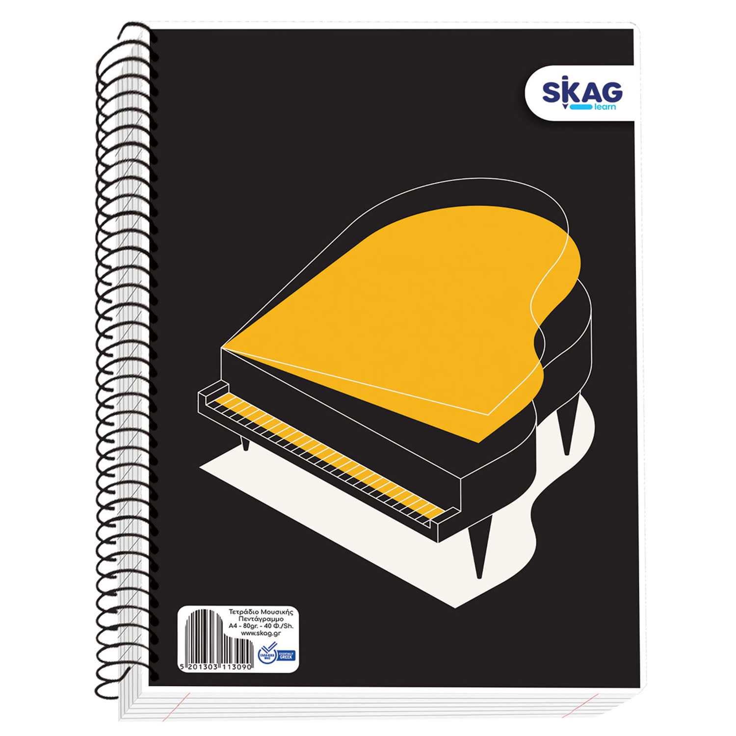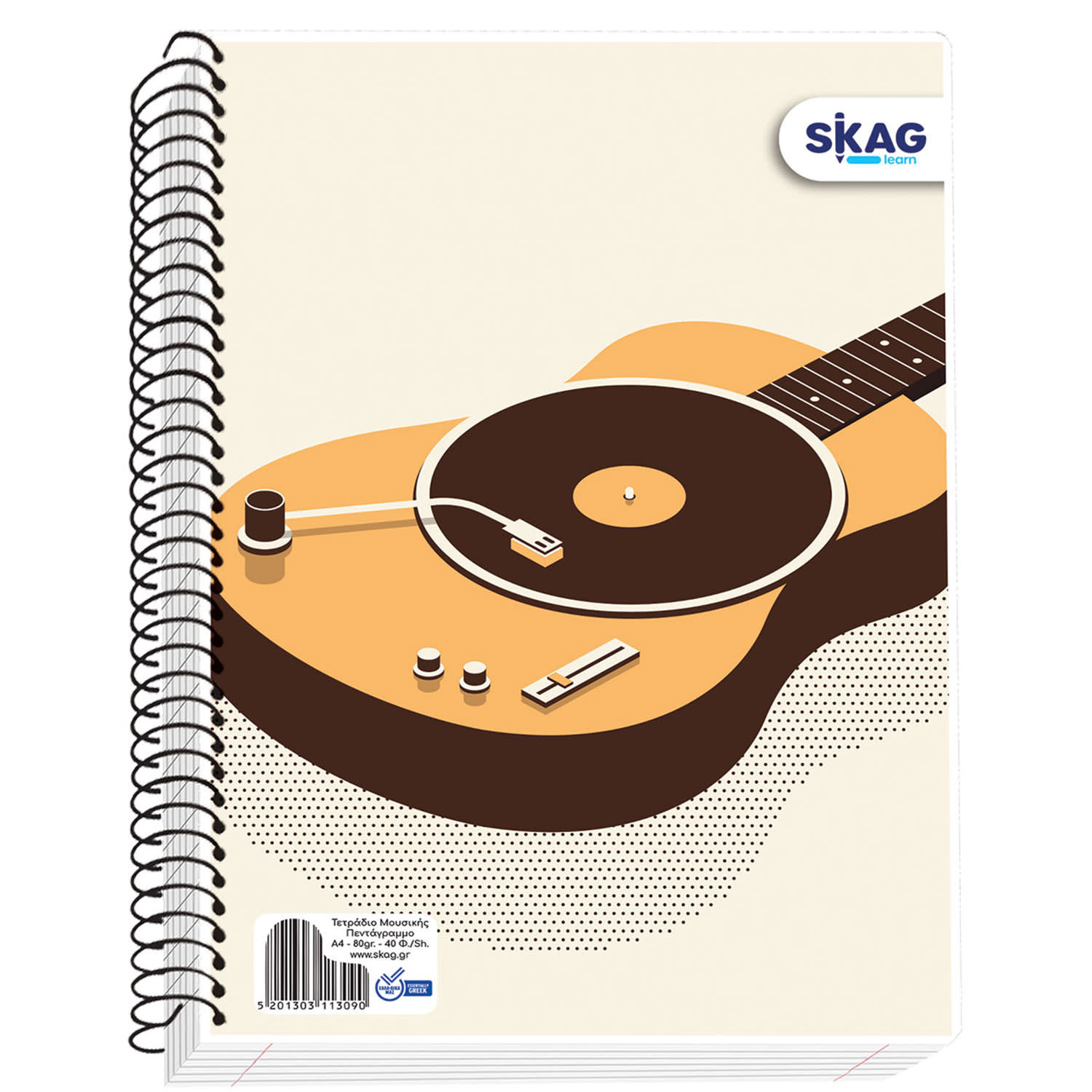 Τετράδιο σπιράλ Skag, μεγέθους Α4 , 40 φύλλων κατάλληλο για το μάθημα της μουσικής για τις σημειώσεις και τις νότες σου.