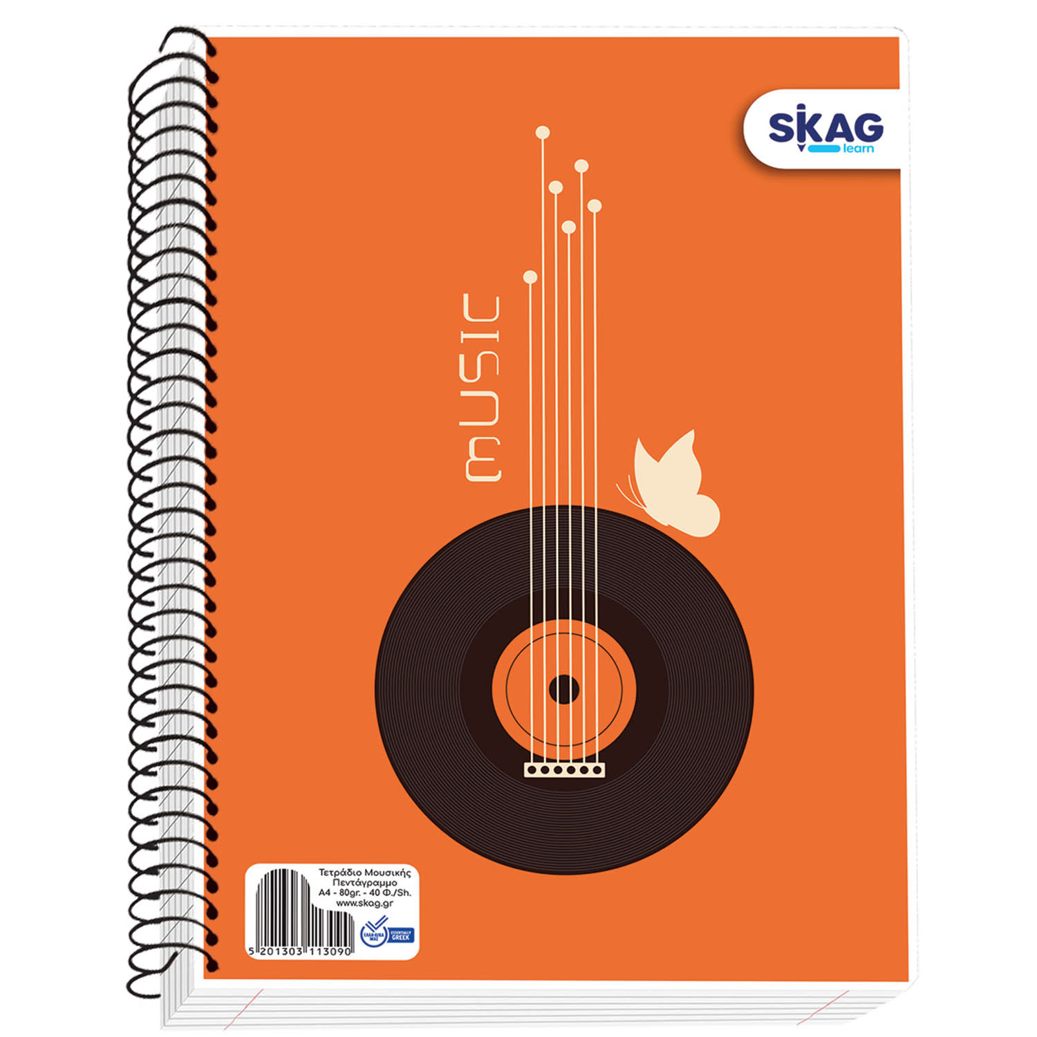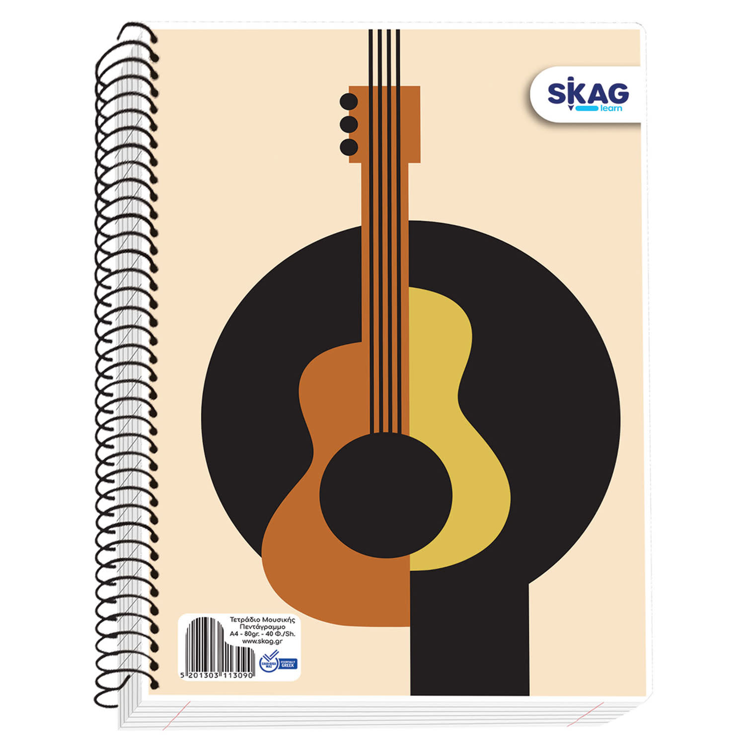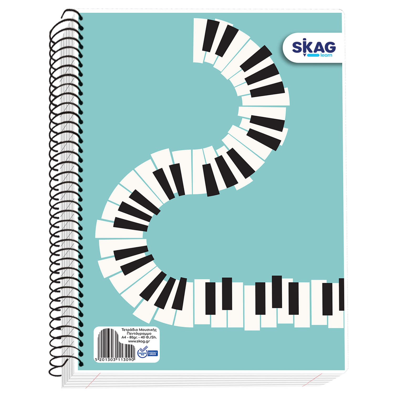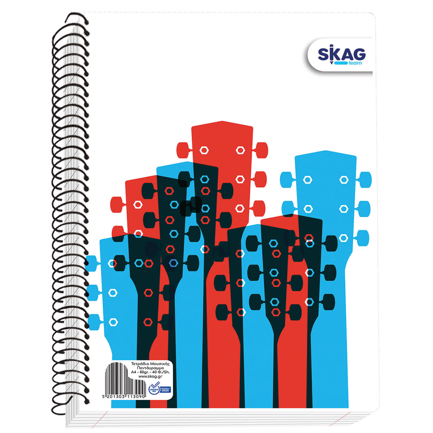 Τετράδιο σπιράλ Skag, μεγέθους Α4 , 40 φύλλων κατάλληλο για το μάθημα της μουσικής για τις σημειώσεις και τις νότες σου.