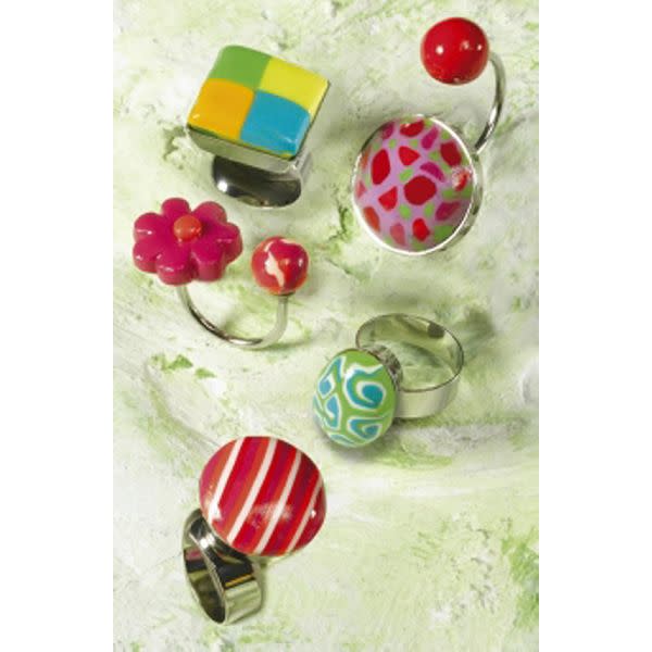 Δαχτυλίδι στρογγυλό σε ασημί χρώμα, μεταβλητού μεγέθους, nickel-free κατάλληλο για τη δημιουργία κοσμημάτων με Fimo.