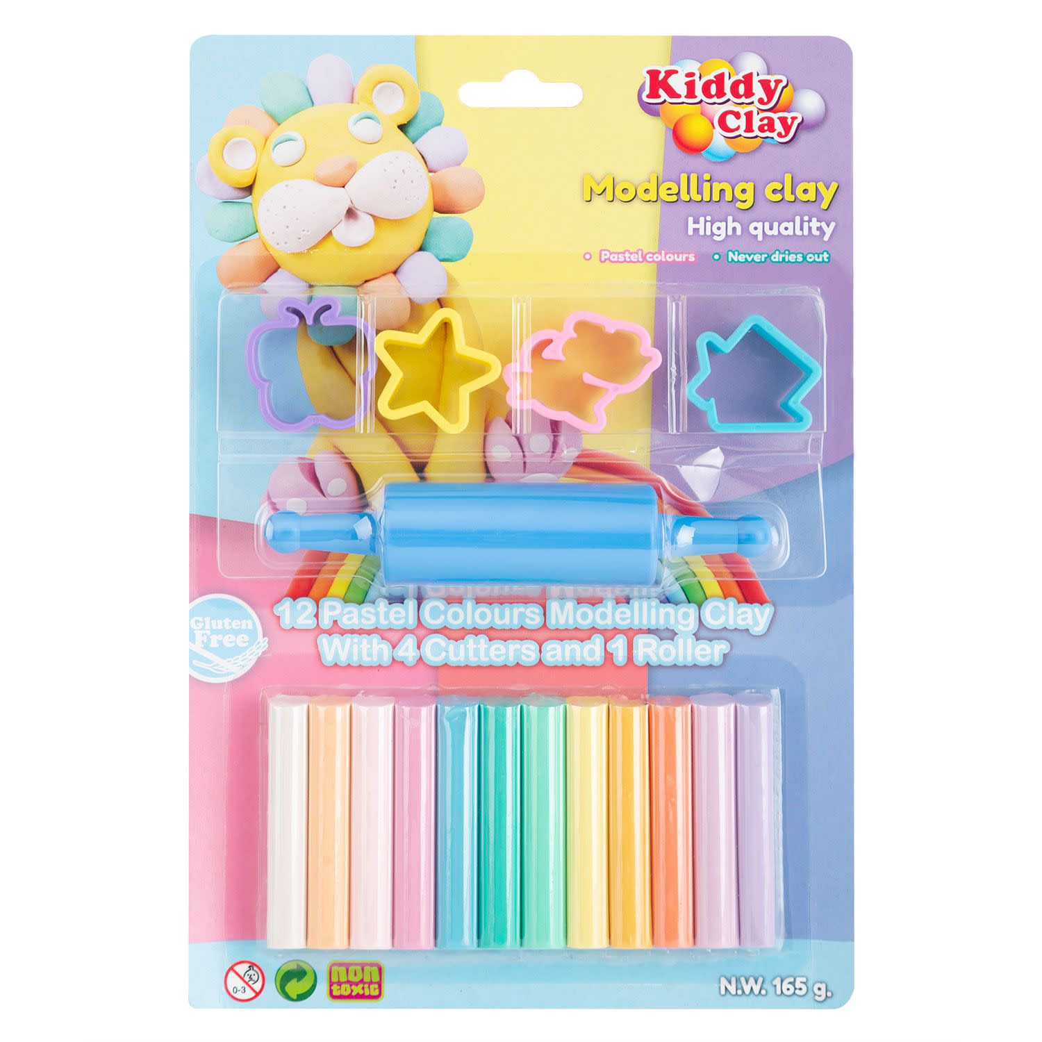 Σετ πλαστελίνες 12 τεμαχίων απο τη Kiddy Clay σε παστέλ αποχρώσεις. Η συσκευασία περιλαμβάνει 4 καλουπάκια και ένα πλάστη, που θα κάνουν τις δημιουργίες σου να ξεχωρίζουν. Είναι ιδιαίτερα εύπλαστες, δεν στεγνώνουν και είναι κατάλληλες για σχολική χρήση, αφού δεν απαιτείται ψήσιμο.