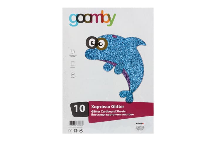 Φύλλα Χαρτόνι Glitter Goomby συσκευασία των 10 τεμαχίων. Αποτελείται από 5 χρώματα με 2 τεμάχια το κάθε χρώμα, είναι ιδανικά για χειροτεχνίες και δημιουργικές ασχολίες.