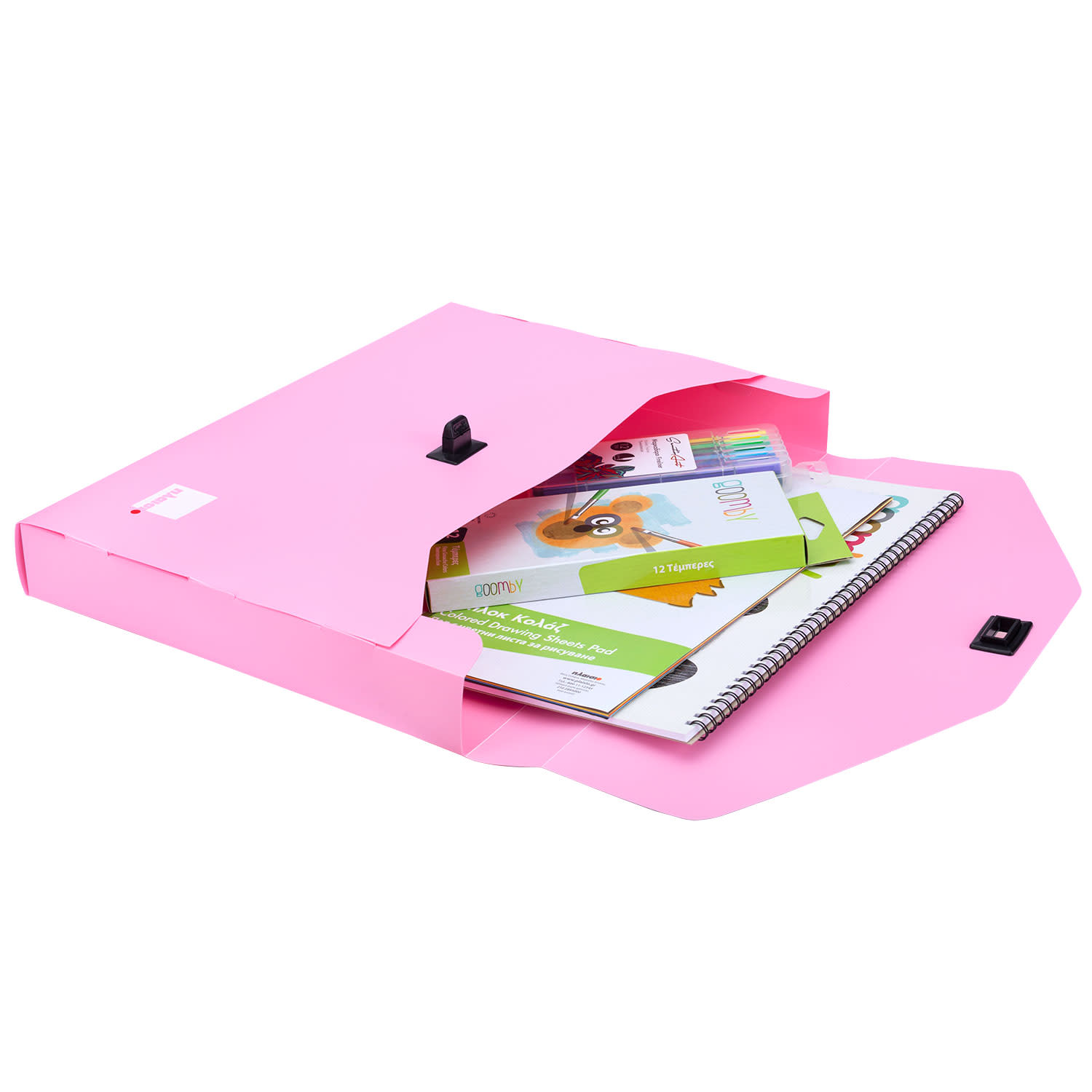 Τσάντα από πλαστικό κατάλληλη για τη μεταφορά των έργων σου. Διάσταση 33 χ 45 χ 5cm, σε ροζ χρώμα.