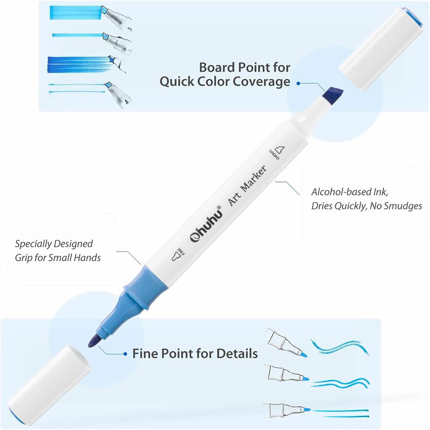 Μαρκαδόροι αλκοόλης Ohuhu Oahu σε σετ των 48 τεμαχίων (47 χρώματα και 1 άχρωμο blender). Διαθέτουν διπλή μύτη Fine & Chisel, που έχουν ως βάση την αλκοόλη. Είναι κατάλληλοι για εικονογράφηση, καθώς διευκολύνουν την ανάμειξη χρωμάτων και στεγνώνουν πολύ γρήγορα!