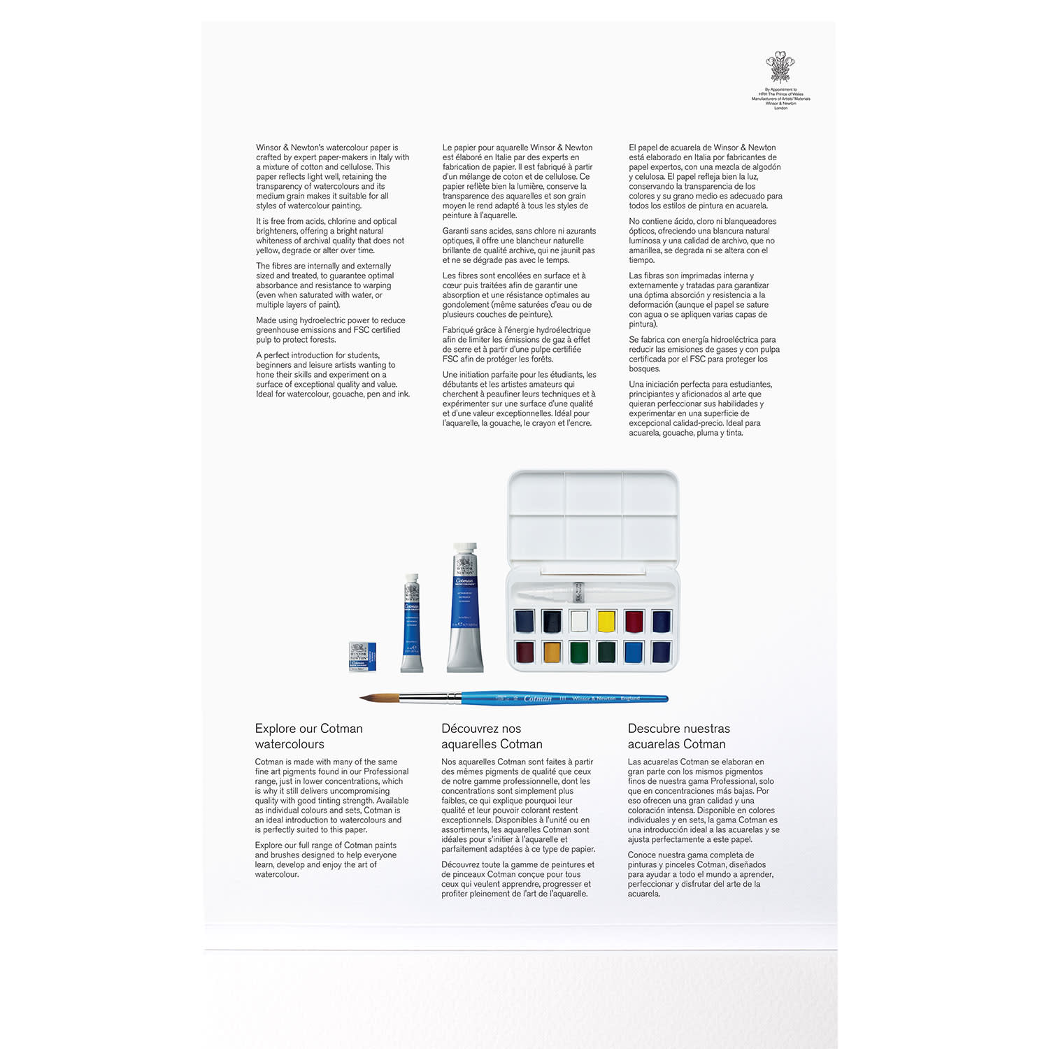 Μπλοκ Winsor & Newton, διάστασης A3, κατάλληλο για υδατοδιαλυτά χρώματα. Έχει βάρος 300gr, είναι κατασκευασμένο από 25% βαμβάκι και περιέχει 12 φύλλα acid free.