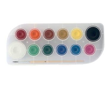 12 διαφορετικά χρώματα, σε πλαστική παλέτα και πινέλο για να ξεκινήσεις αμέσως τις δημιουργίες σου.*Ακατάλληλο για παιδιά κάτω των 3 ετών. Περιέχει μέρη που μπορεί να καταποθούν.