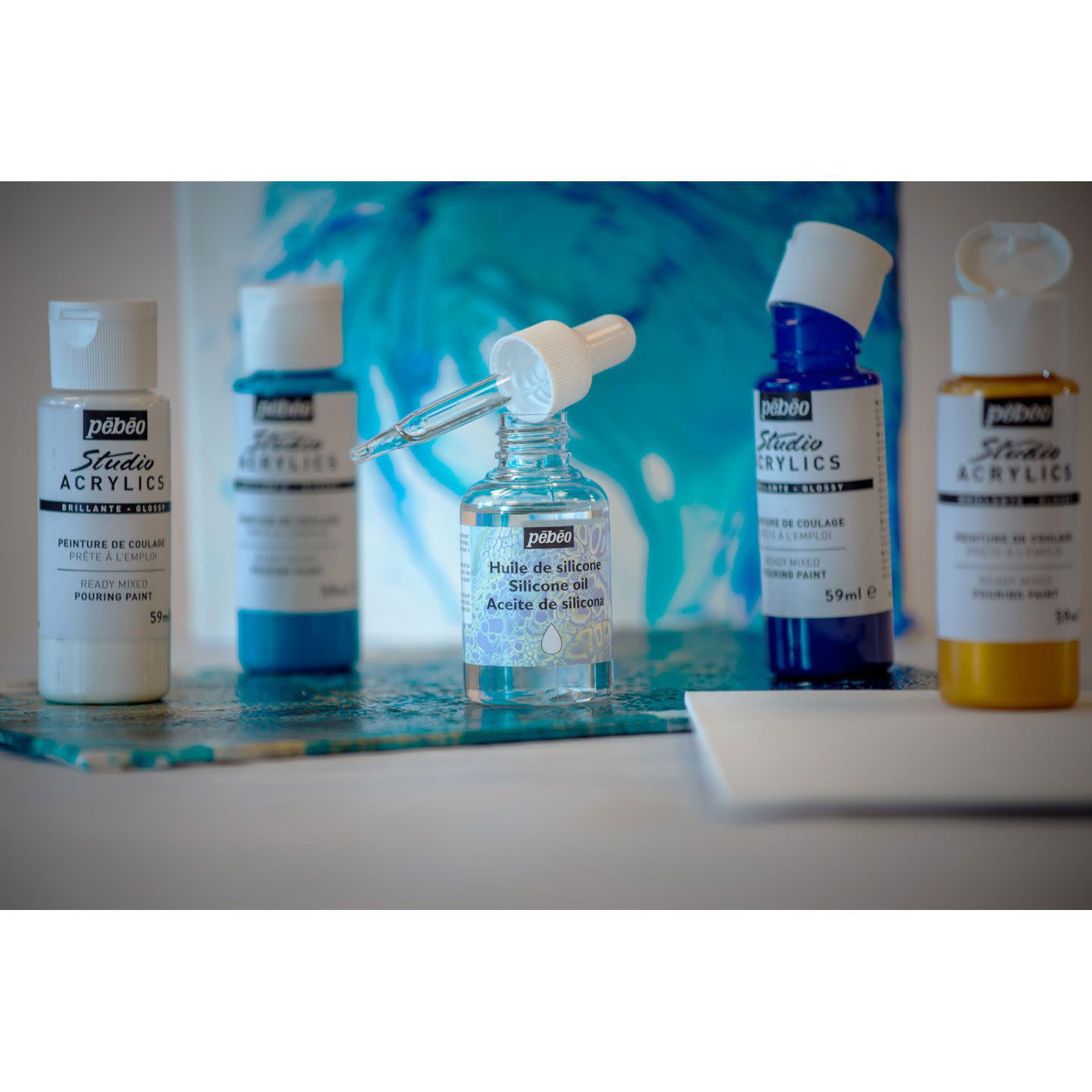 Pebeo Σετ Ακρυλικά Χρώματα Για Pouring 4X59Ml & Σιλικόνη 50Ml