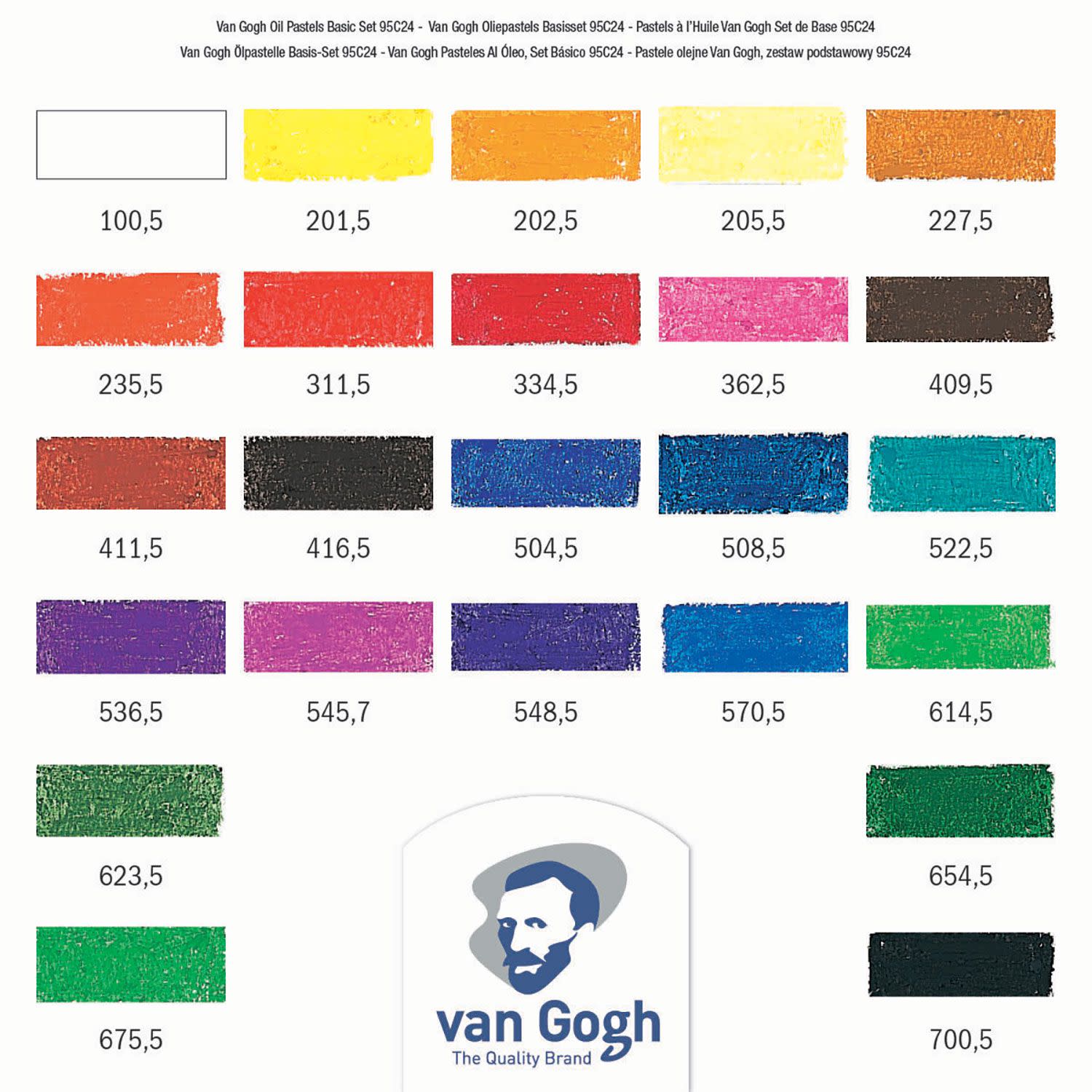 Παστέλ λαδιού Van Gogh σε συσκευασία με 24 αποχρώσεις, μεγάλης πυκνότητας σε χρώματα που απλώνονται εύκολα και συνδυάζονται μεταξύ τους. Χρησιμοποιούνται όπως είναι για ζωγραφική, διευκολύνοντας και τον πιο αρχάριο εξαιτίας της μαλακοτητάς τους. Παράλληλα, μπορούν να απλωθούν και να γίνουν σαν λαδομπογιά με ένα απλό αραιωτικό λαδιού και ένα πινέλο. Μπορούν να χρησιμοποιηθούν σε χαρτί, χαρτόνι και ξύλο!