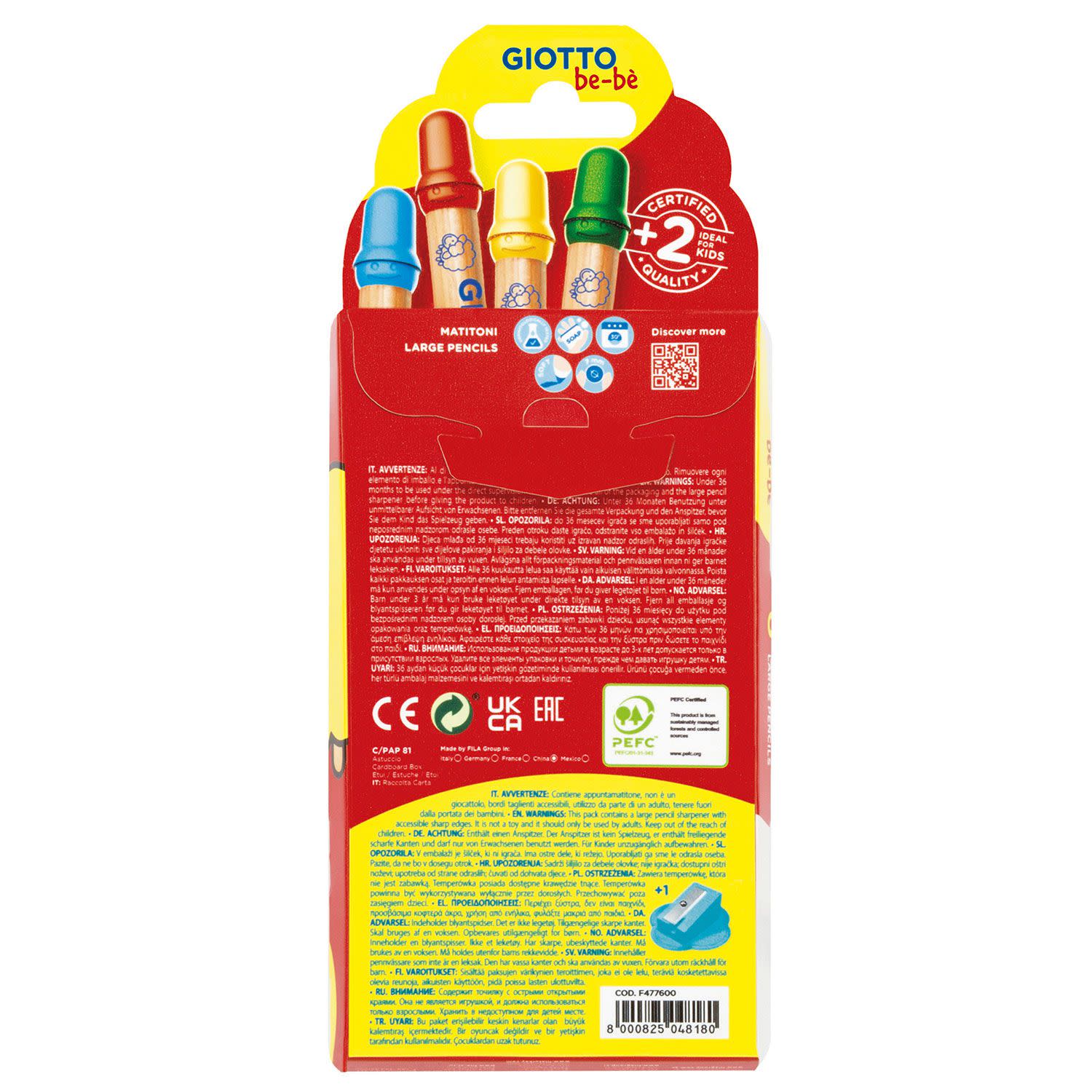 Με τόσο μεγάλες ξυλομπογιές οι μικροί μας φίλοι θα μπορούν να έχουν πάντα μεγάλες ιδέες! Οι ξυλομπογιές Be-Be της Giotto αποτελούνται από 6 λαμπερά, μαλακά χρώματα, που αφαιρούνται χωρίς κόπο!