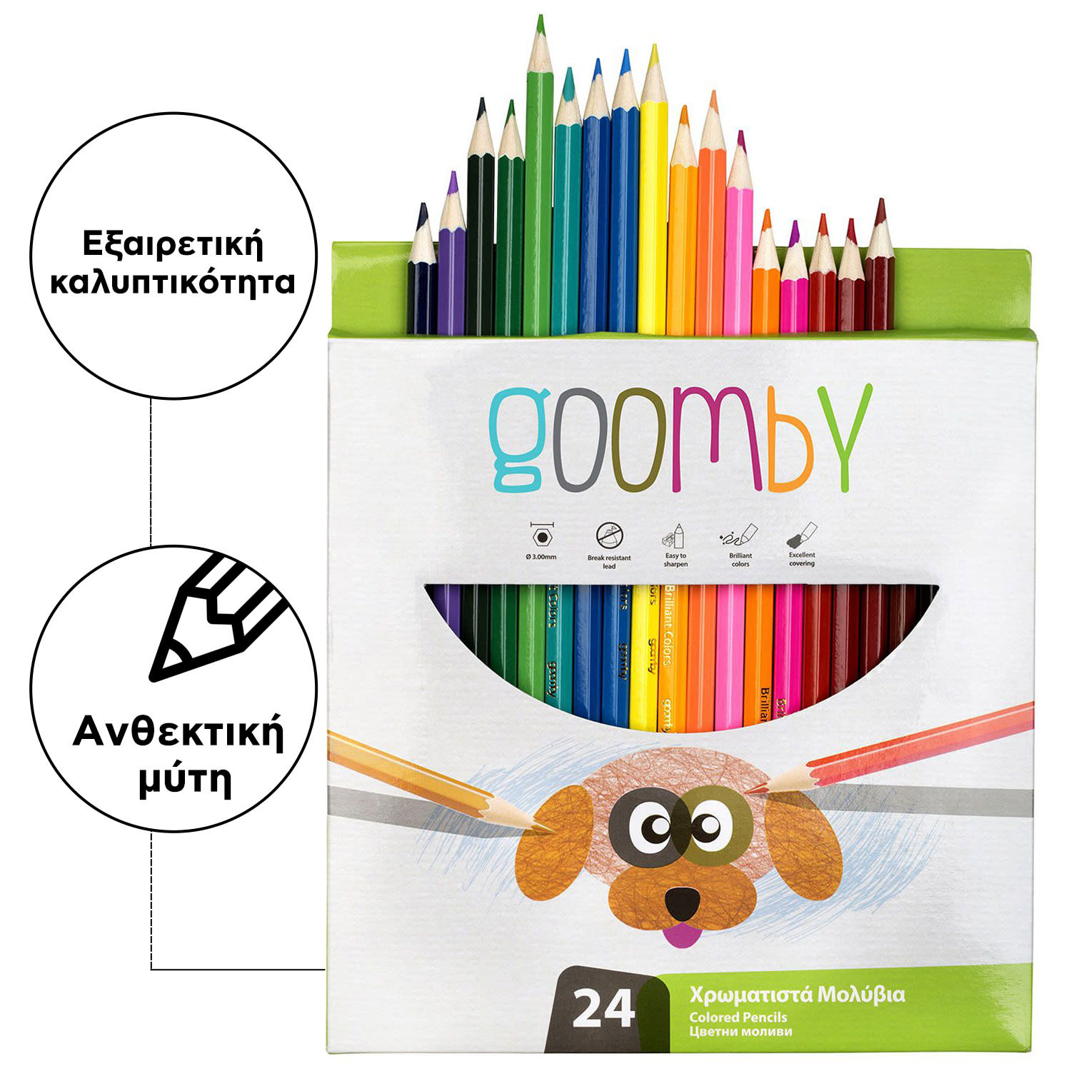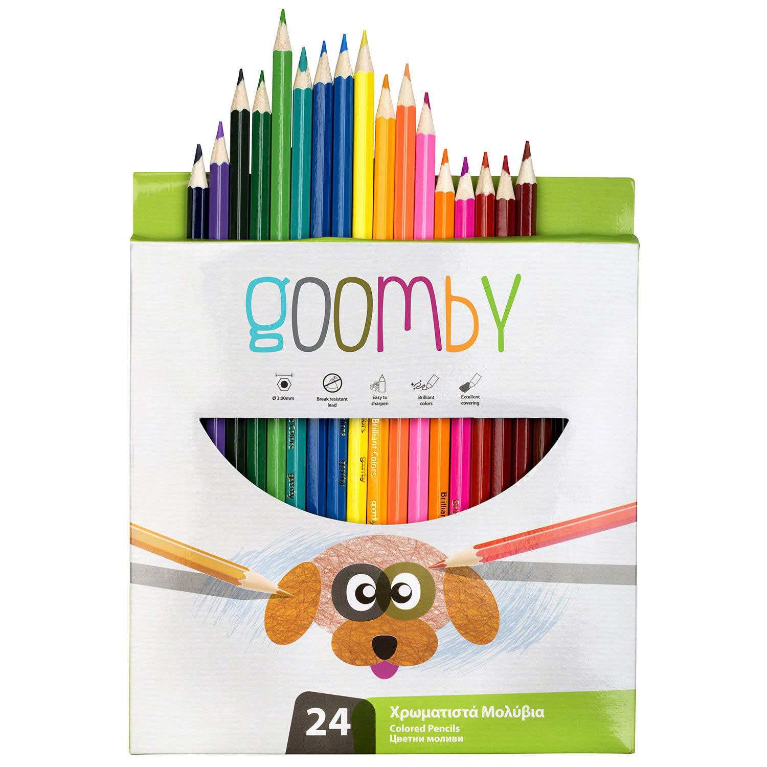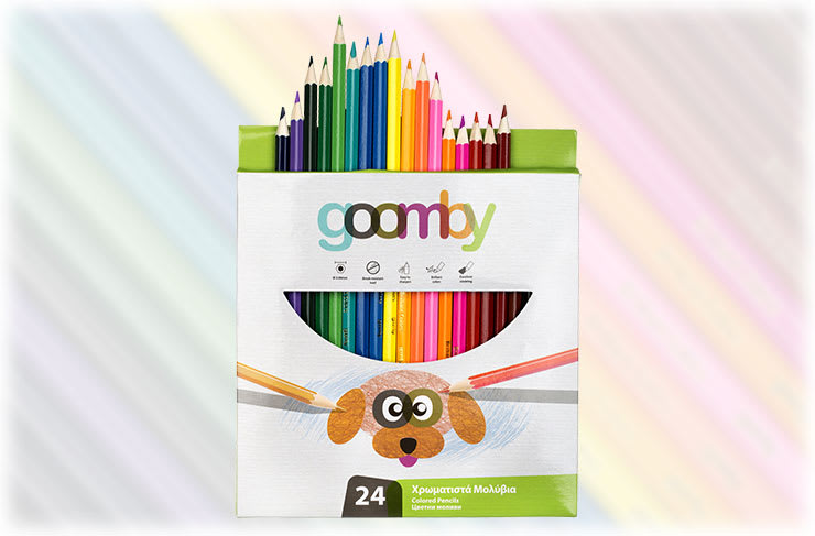 Δώσε ζωή στα σχέδιά σου, με ένα σετ 24 χρωματιστών μολυβιών Goomby με εξαιρετική λαμπρότητα και καλυπτικότητα με μεγάλη αντοχή στο χρόνο.