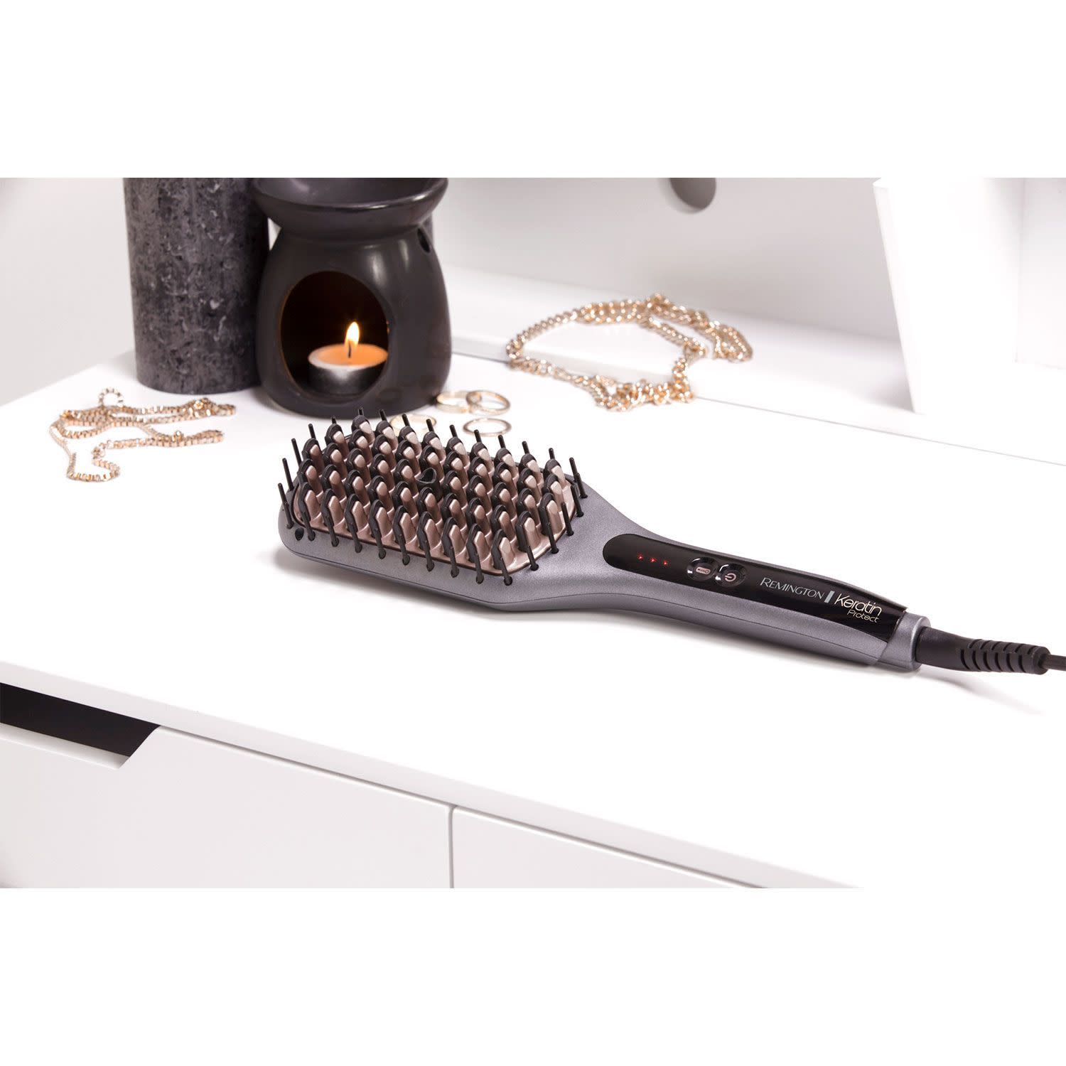 Η ηλεκτρική βούρτσα CB 7480 της Remington διαθέτει 3 ρυθμίσεις θερμοκρασίας με μέγιστη τους 230°C, για να φορμάρεις γρήγορα και αποτελεσματικά τα μαλλιά σου! Οι τρίχες της έχουν επίστρωση από κερατίνη και αμυγδαλέλαιο, για να φροντίζουν και για την ενυδάτωση των μαλλιών σου. Επιπλέον, το καλώδιο περιστρέφεται για να μη βάζει όριο στις κινήσεις σου, ενώ η λειτουργία της απενεργοποιείται αυτόματα μετά από 60 λεπτά, για να έχεις το κεφάλι σου ήσυχο!