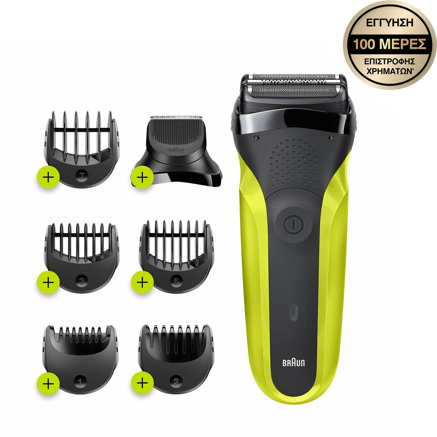 Με την επαναφορτιζόμενη, ξυριστική μηχανή 300BT/VTG της Braun φέρνεις το ξύρισμα στα «μέτρα» σου! Ο ειδικά σχεδιασμένος κοπτικός μηχανισμός προσαρμόζεται αυτόματα σε κάθε καμπύλη του προσώπου σου, κάνοντας το ξύρισμα πιο εύκολο από ποτέ.