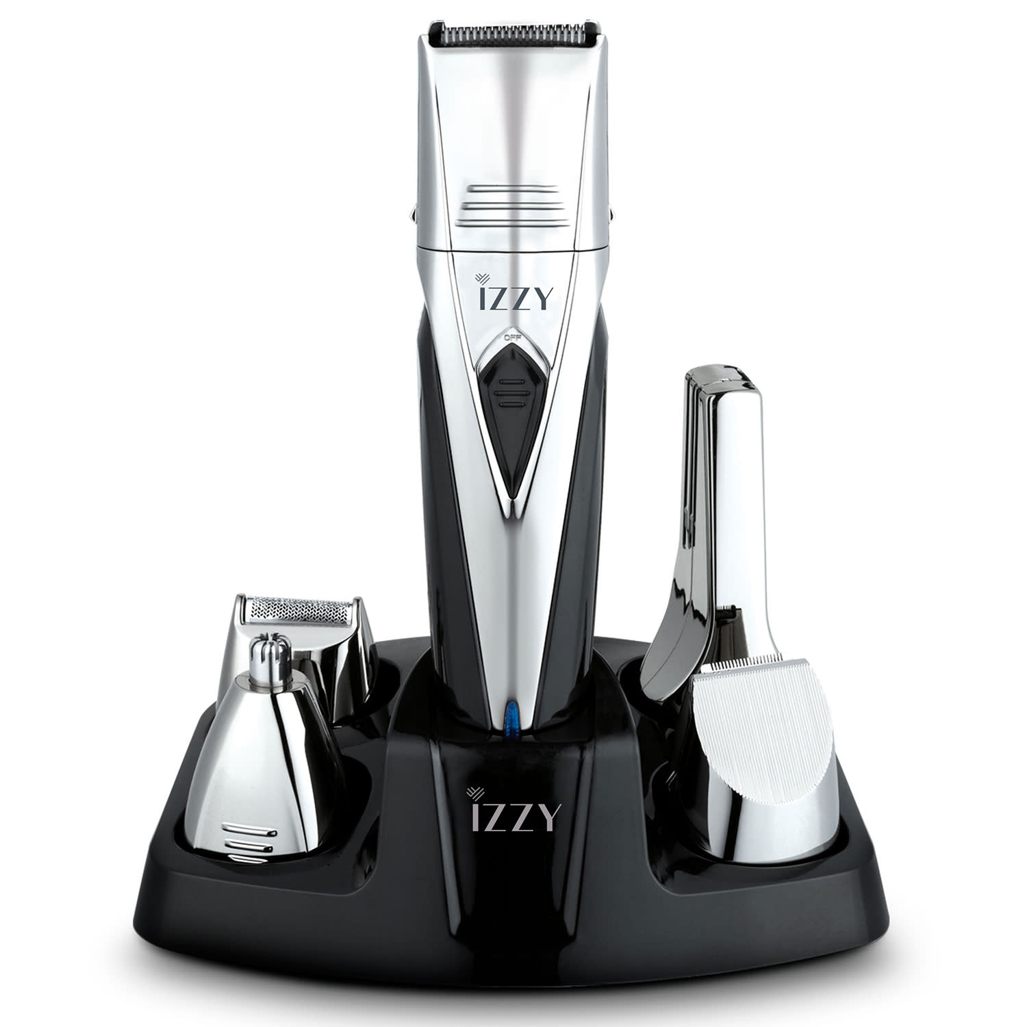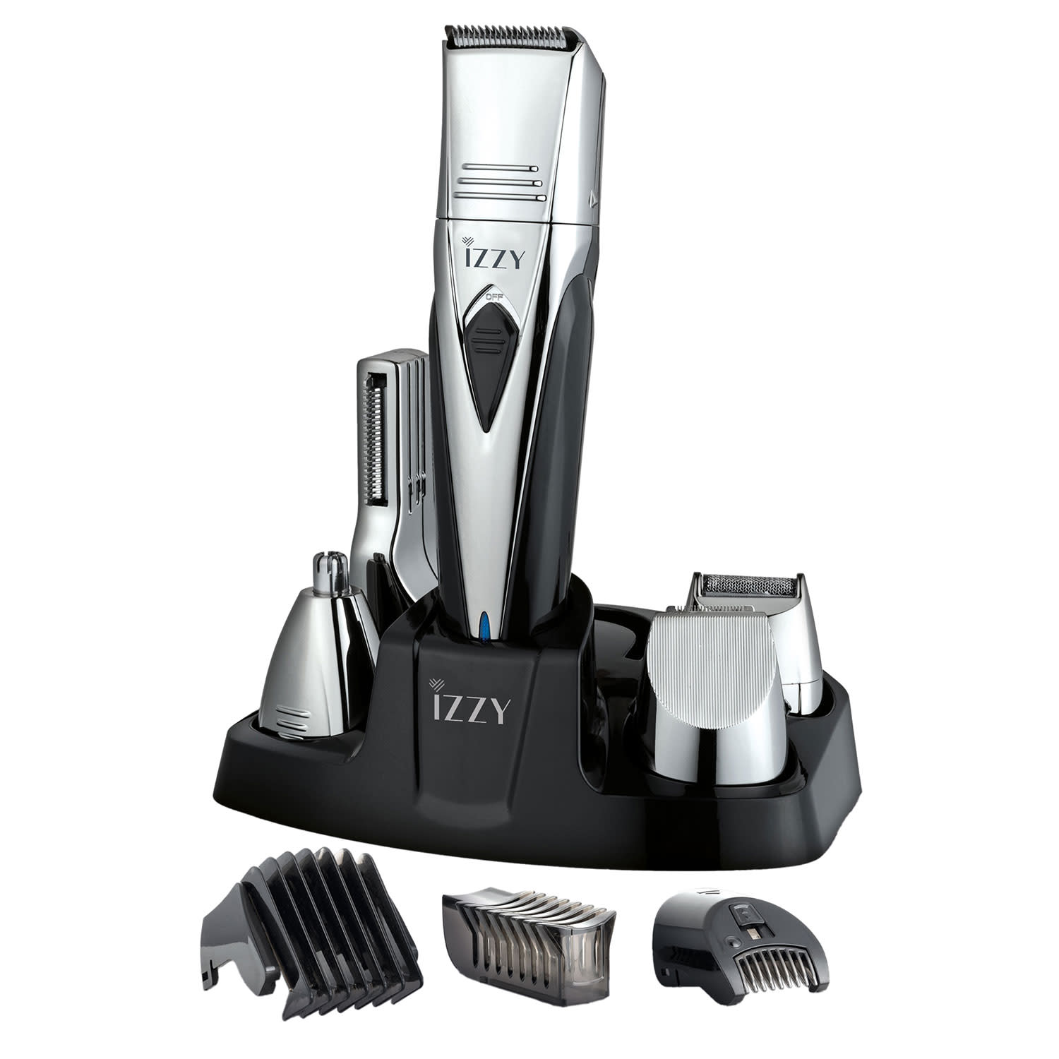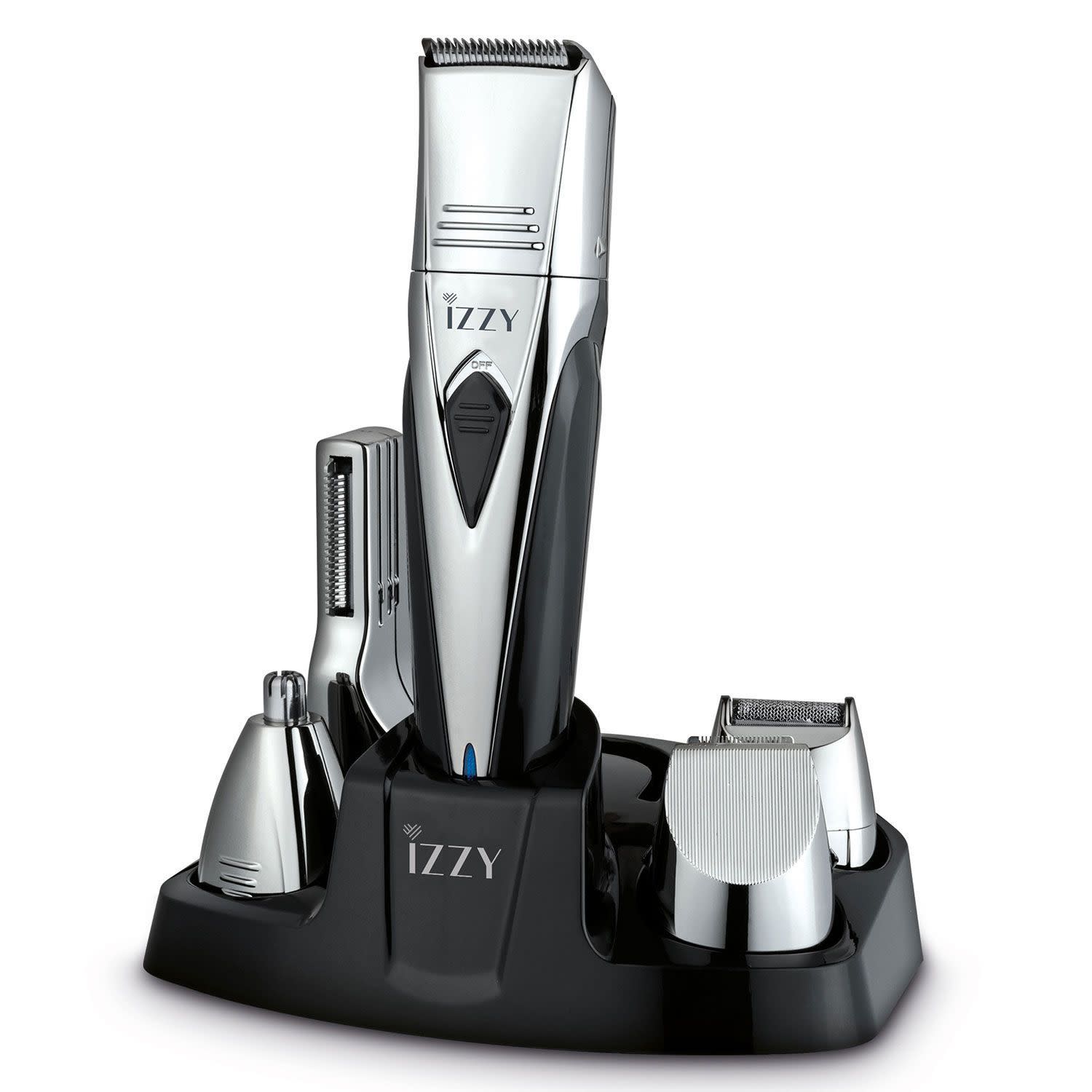Προσεγμένη εμφάνιση με το επαναφορτιζόμενο σετ ανδρικής περιποίησης 10-σε-1 της Izzy, που περιλαμβάνει Body Grooming κεφαλή για το σώμα, βάση φόρτισης και 12 θέσεις κοπής για εξειδικευμένο αποτέλεσμα!