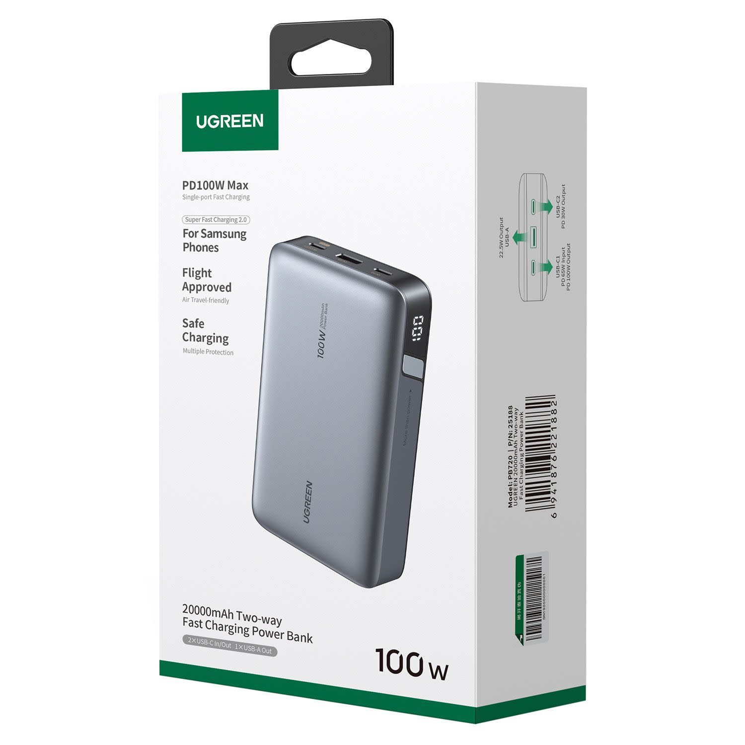 Η συσκευή της UGREEN ενσωματώνει τρεις υποδοχές, με την USB-C1 να προσφέρει μέγιστη ισχύ φόρτισης έως και 100W, την USB-C2 να προσφέρει έως και 30W και την USB-A να προσφέρει μέγιστη ισχύ έως και 22,5W. Φυσικά, μπορεί να φορτίσει έως και τρεις συσκευές ταυτόχρονα! Και με την εξαιρετικά χρήσιμη οθόνη LED, έχεις ξεκάθαρη εικόνα για την μπαταρία που απομένει!