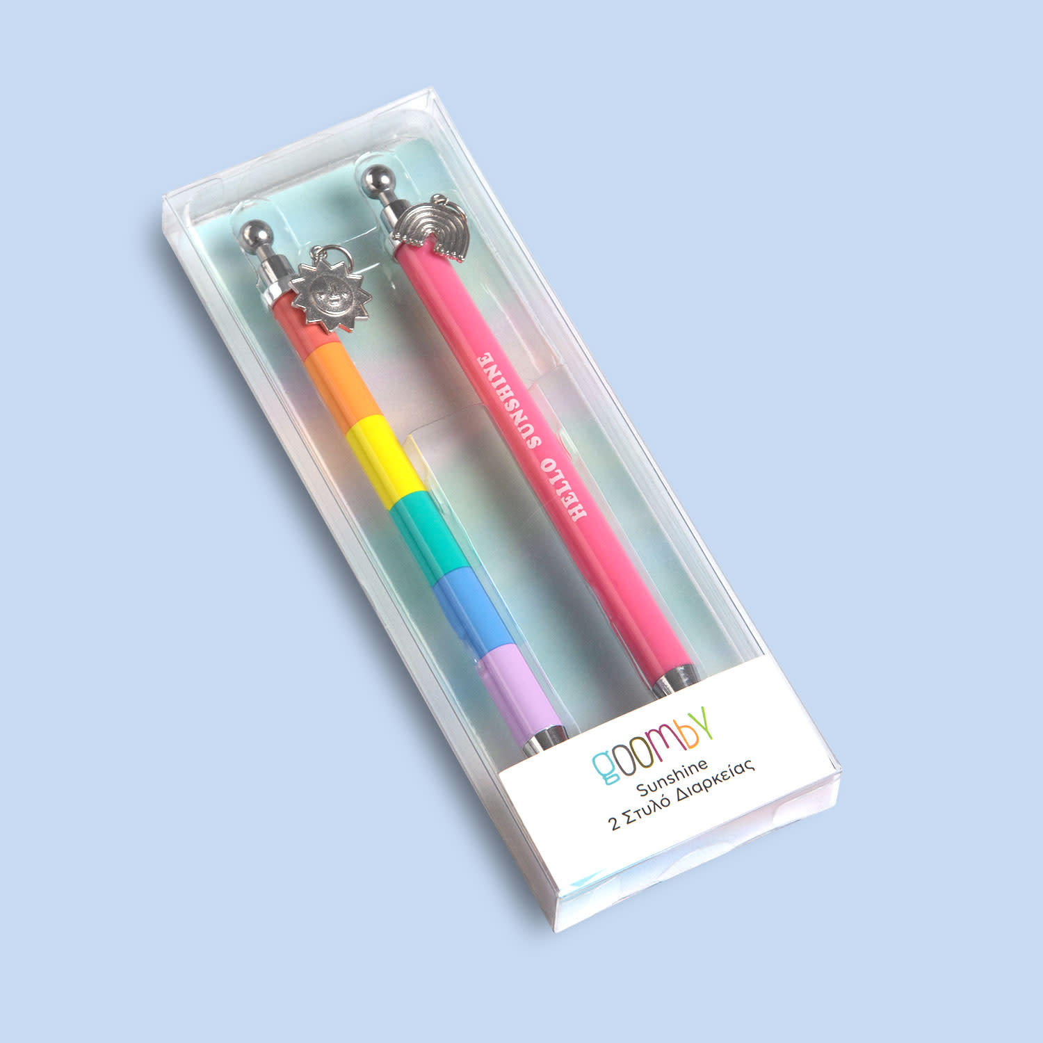 Στυλό διαρκείας «Sunshine» από τη Goomby, σε συσκευασία των 2 τεμαχίων, για να καταγράφεις όλα τα tasks και τις σημαντικές σημειώσεις σου με στιλ και… καλή διάθεση!