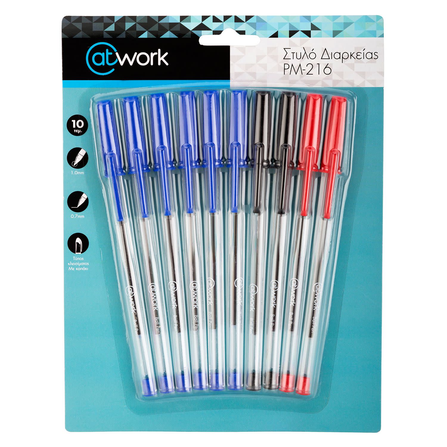 @Work Στυλό Διαρκείας 3 Χρώματα Πάχος Μύτης 1.0mm 10τεμ.