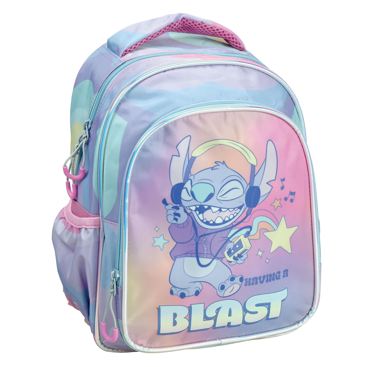 Μπες με στιλ στη νέα σχολική χρονιά με την τσάντα νηπιαγωγείου Stitch Gen Z. Διαθέτει κεντρική θήκη, μία επιπλέον μπροστινή & πλαϊνές θήκες για παγούρια, ώστε να μεταφέρεις ό,τι χρειάζεσαι μαζί σου!